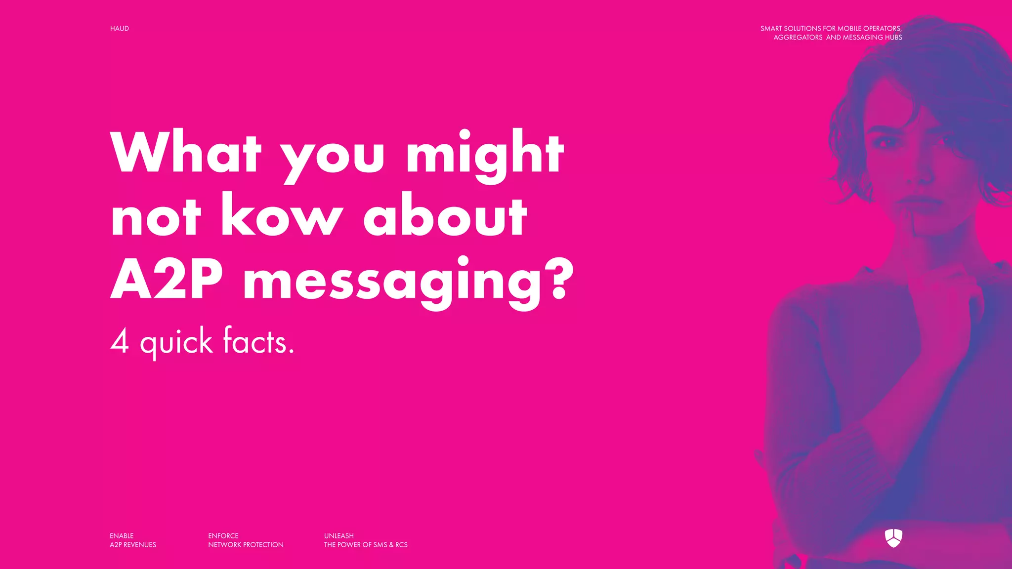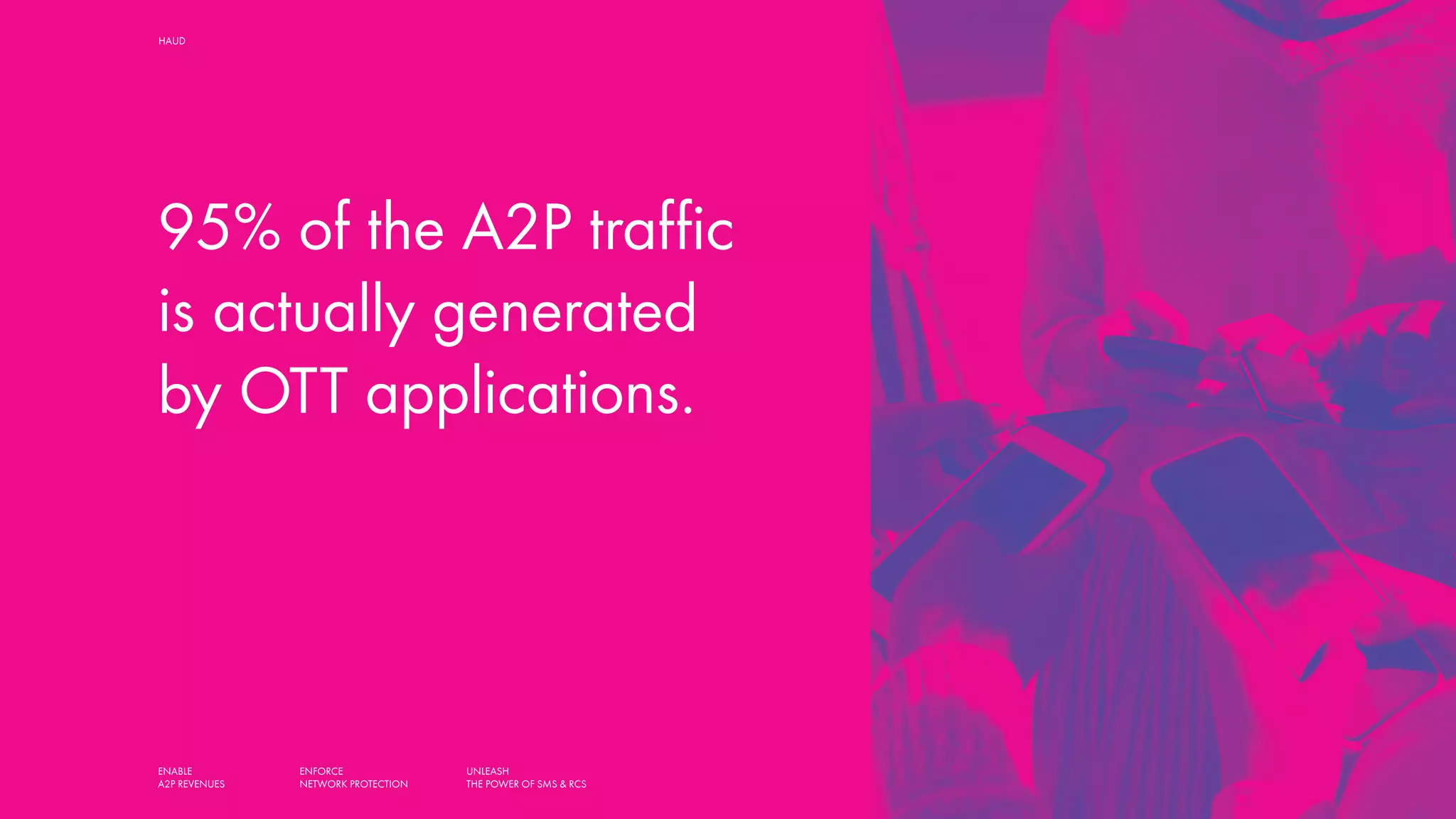 The document discusses several key facts about A2P messaging: 1) 95% of A2P traffic is generated by over-the-top (OTT) applications; 2) two-factor authentication (2FA) messages form the main part of monetizable traffic; 3) local A2P traffic should also be monitored, as large volumes may be leaking over unauthorized "grey routes"; 4) domestic A2P revenues can be lost if international grey route prices are lower than domestic rates, even though domestic volumes are often 10 times higher. The document promotes contacting experts at haud.com to learn more about A2P messaging solutions.