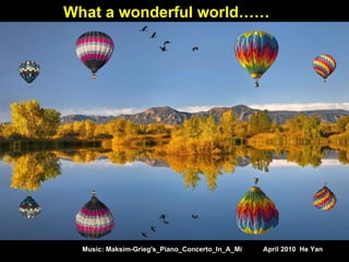 This document discusses a piano concerto written by Maksim-Grieg in A minor from April 2010. The author reflects on what a wonderful world it is. They say goodbye and look forward to seeing the reader again in the future.