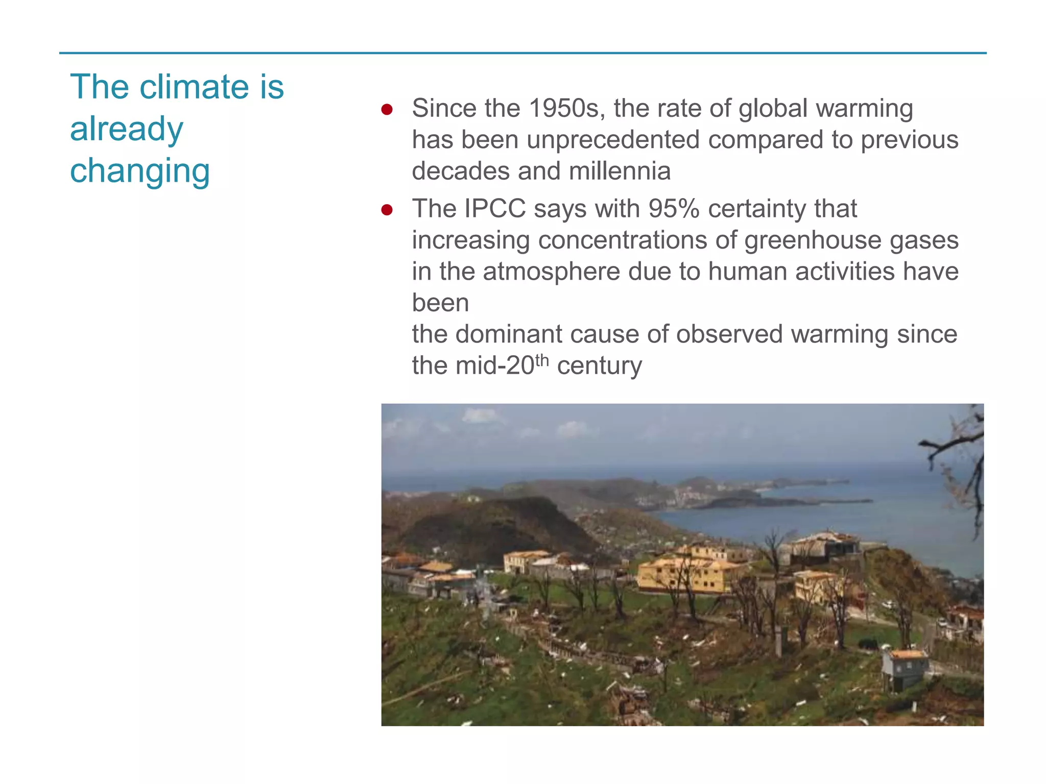 The IPCC's fifth assessment report highlights the severe impacts of climate change on Small Island Developing States (SIDS), including rising sea levels, increased cyclone activity, and effects on tourism and marine ecosystems. It stresses the urgent need for adaptation measures and international cooperation to mitigate risks, as SIDS face high economic costs linked to climate-related damages. The report calls for integrated approaches to adaptation, mitigation, and development to enhance resilience and secure sustainable futures for SIDS.