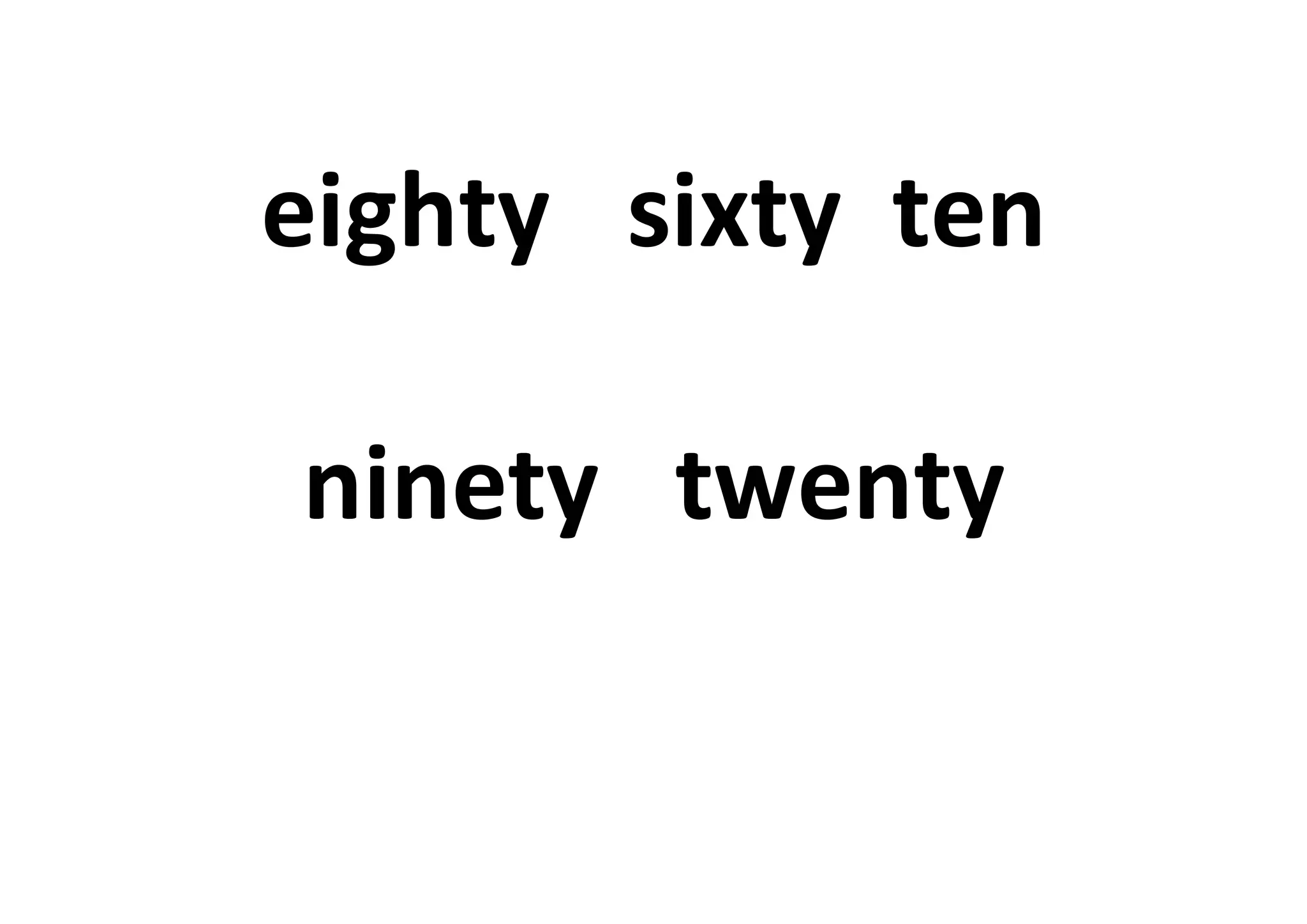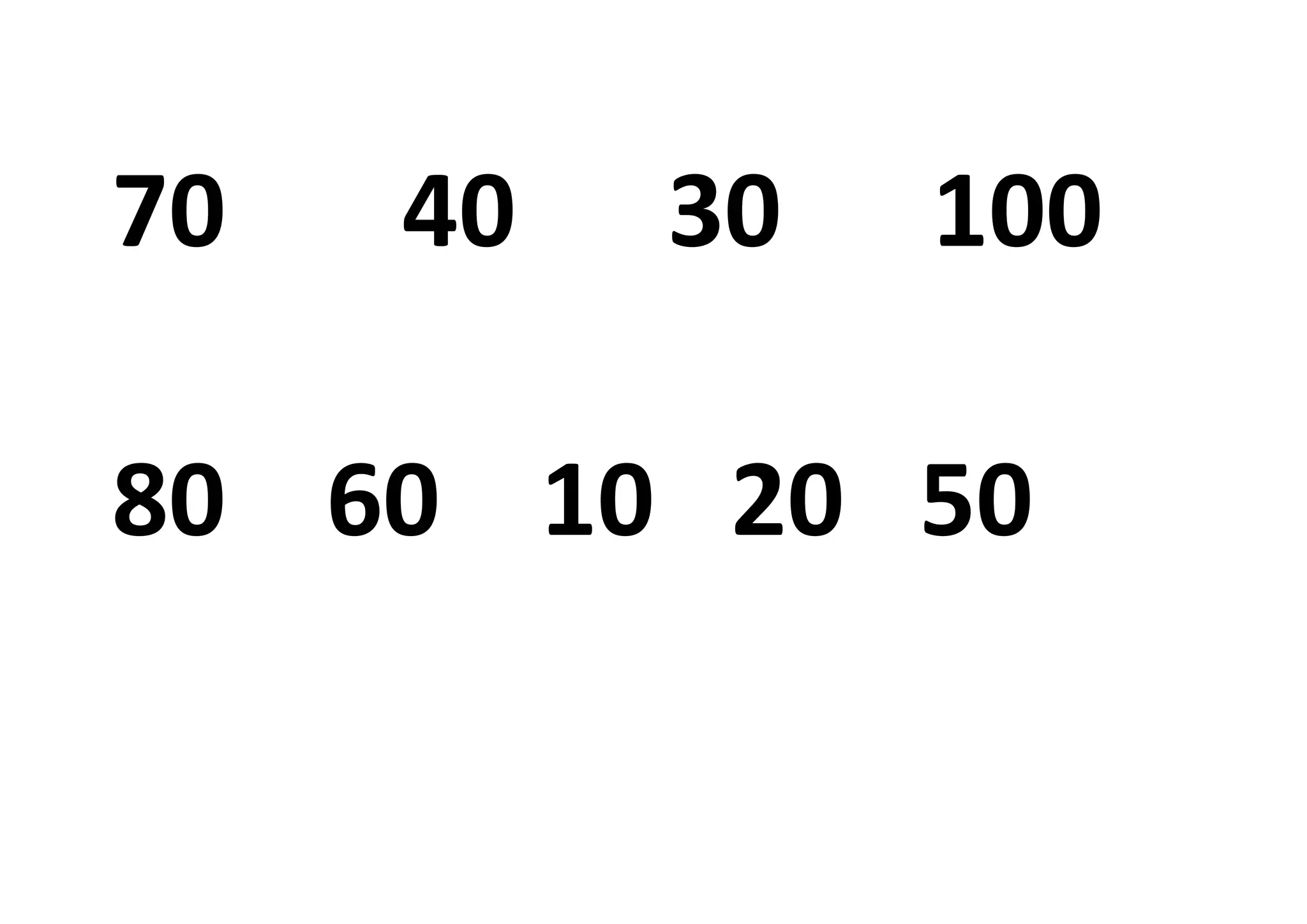 The document contains 6 lines of numbers separated by line breaks, with the numbers 70, 40, 30, 100, 80, 60, 10, 20, 50, eighty, sixty, ten, ninety, twenty, seventy, one hundred, forty, and fifty thirty.