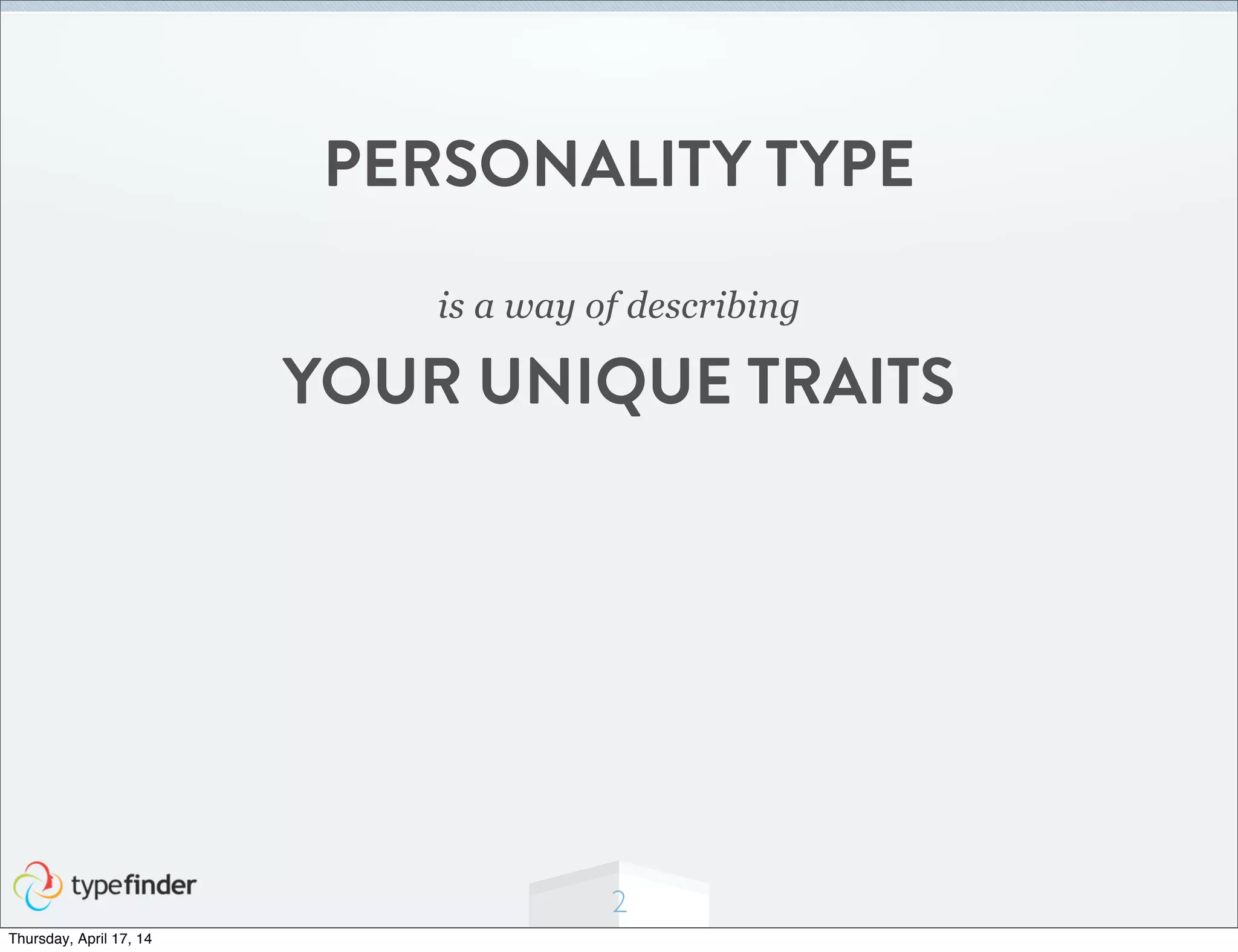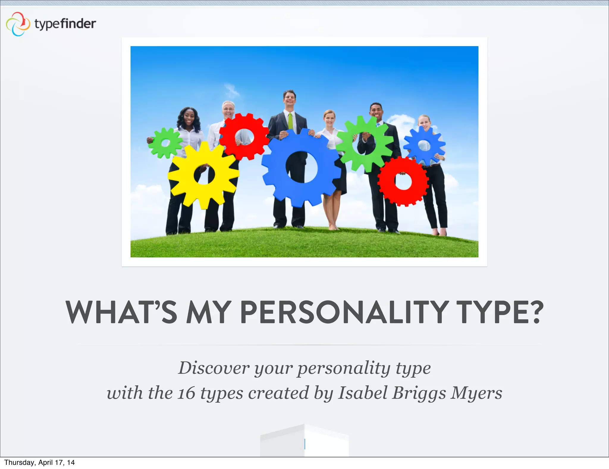 The document outlines a framework for discovering one's personality type based on the 16 types developed by Isabel Briggs Myers, which are defined across four dimensions: energy style, thinking style, values style, and life style. Each personality type consists of a four-letter code representing preferences in these dimensions, such as introversion vs. extraversion and sensing vs. intuition. Understanding your type can help identify ideal careers and unique strengths.