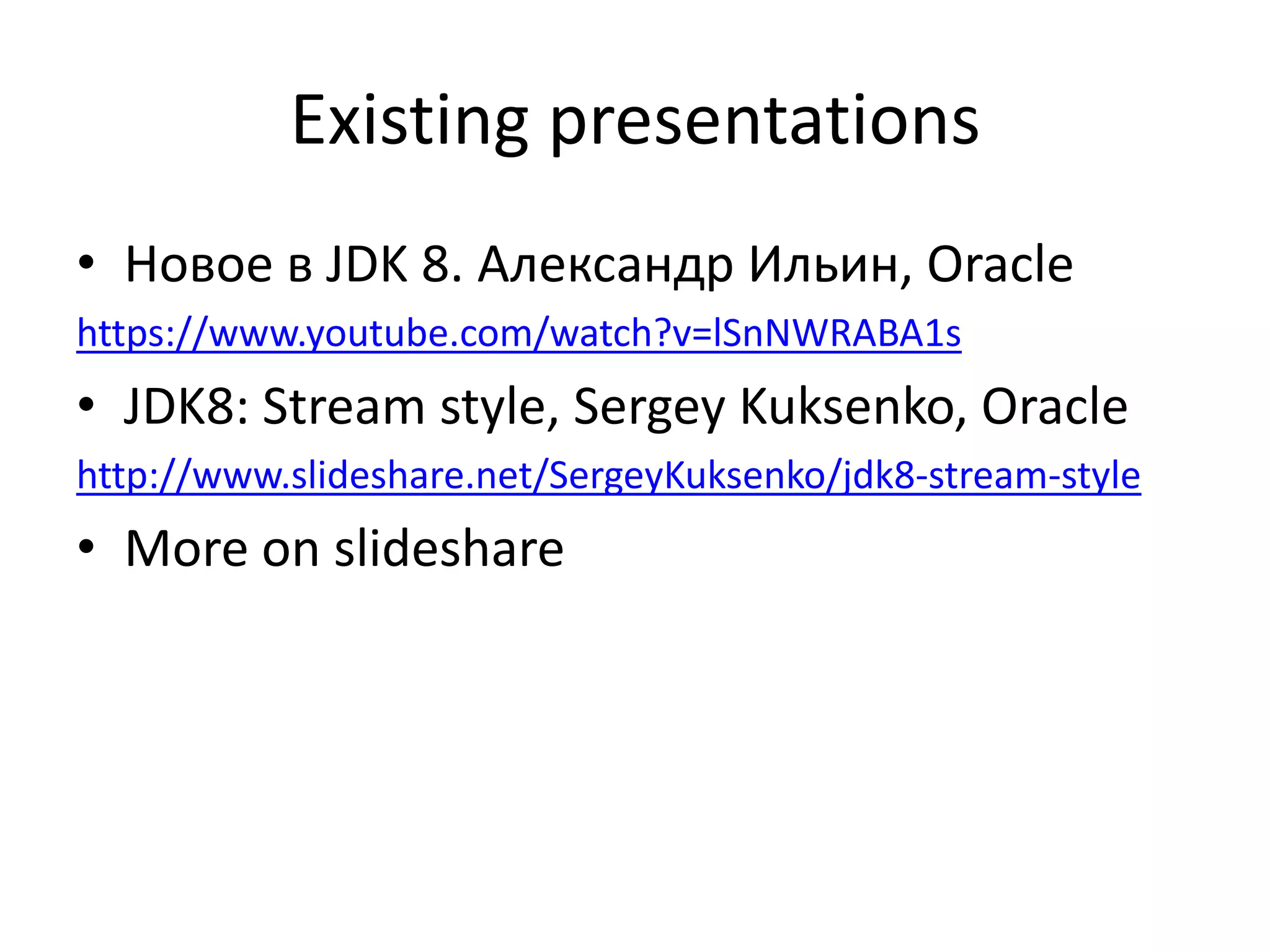 This document summarizes some of the new features introduced in Java 8, including streams, lambda expressions, default methods, and date/time API changes. It discusses streams in more detail, covering stream operations like filter, map, distinct, and collect. It also covers new features like Optional for returning absent/present values, annotations for null checks, parallel array sorting, and concurrency utilities.