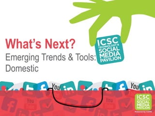 The document discusses emerging trends and tools in domestic and Latin American markets. Domestically, it outlines trends around social and mobile technology adoption, and real-time information consumption. Tools mentioned include social media, mobile apps, texts and news apps. For Latin America, key trends are rising internet penetration, growth of social networking especially via Facebook and Twitter, increased mobile device usage driving internet and social media, and sustained popularity of instant messaging. It recommends companies define a social media strategy that involves appointing a manager, building a website and regularly posting across platforms.