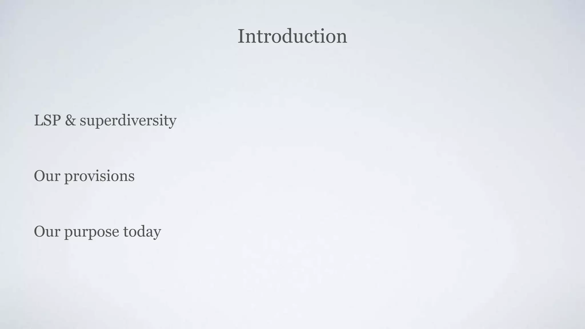 The document discusses Languages for Specific Purposes (LSP) and its relevance in the context of superdiversity and communication. It outlines key differentiations within LSP, including syntactic features and roles of tutors in facilitating learning. Various references are provided to support the theories and practices associated with LSP education.