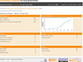 The document discusses the concept of the Efficiency Exchange, a collaborative platform aimed at knowledge sharing, problem solving, and benchmarking best practices among councils and partners. It outlines the current state of development, including a growing membership and a prototype platform, and invites users to participate actively. The goal is to foster a culture of shared learning and efficient practices in local government.