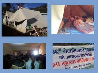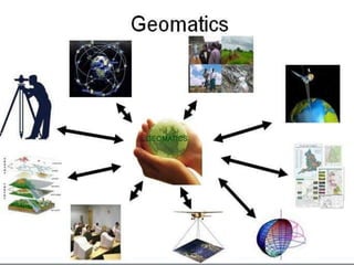 Uttam Pudasaini gives a presentation on geomatics, which involves determining the precise position of objects on Earth and representing spatial information digitally. Geomatics incorporates fields like geodesy, surveying, GPS, remote sensing, photogrammetry, GIS and programming for spatial data analysis. It is a rapidly developing industry focused on collecting and analyzing location-based information. Geomatics engineers design systems to gather and study data about land, oceans, natural resources and man-made structures to support decision-making. The career was entered due to advice, scholarships and its dynamic nature combining mathematics, computers, travel and policy work.
