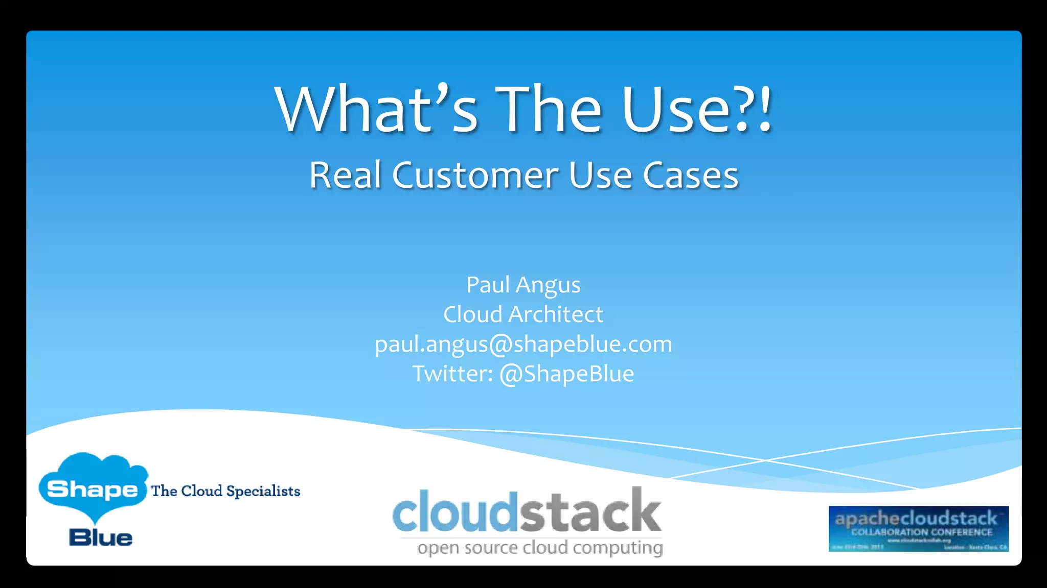 The document discusses real customer use cases of CloudStack, highlighting how customers like Paddy Power and a UK satellite broadcaster utilize it for various applications, including development, testing, and production environments. It outlines the challenges these customers face, the solutions they implement, and the improvements they desire within the CloudStack framework. Additionally, the presentation mentions specific features and configurations that enhance performance and scalability across different use cases.