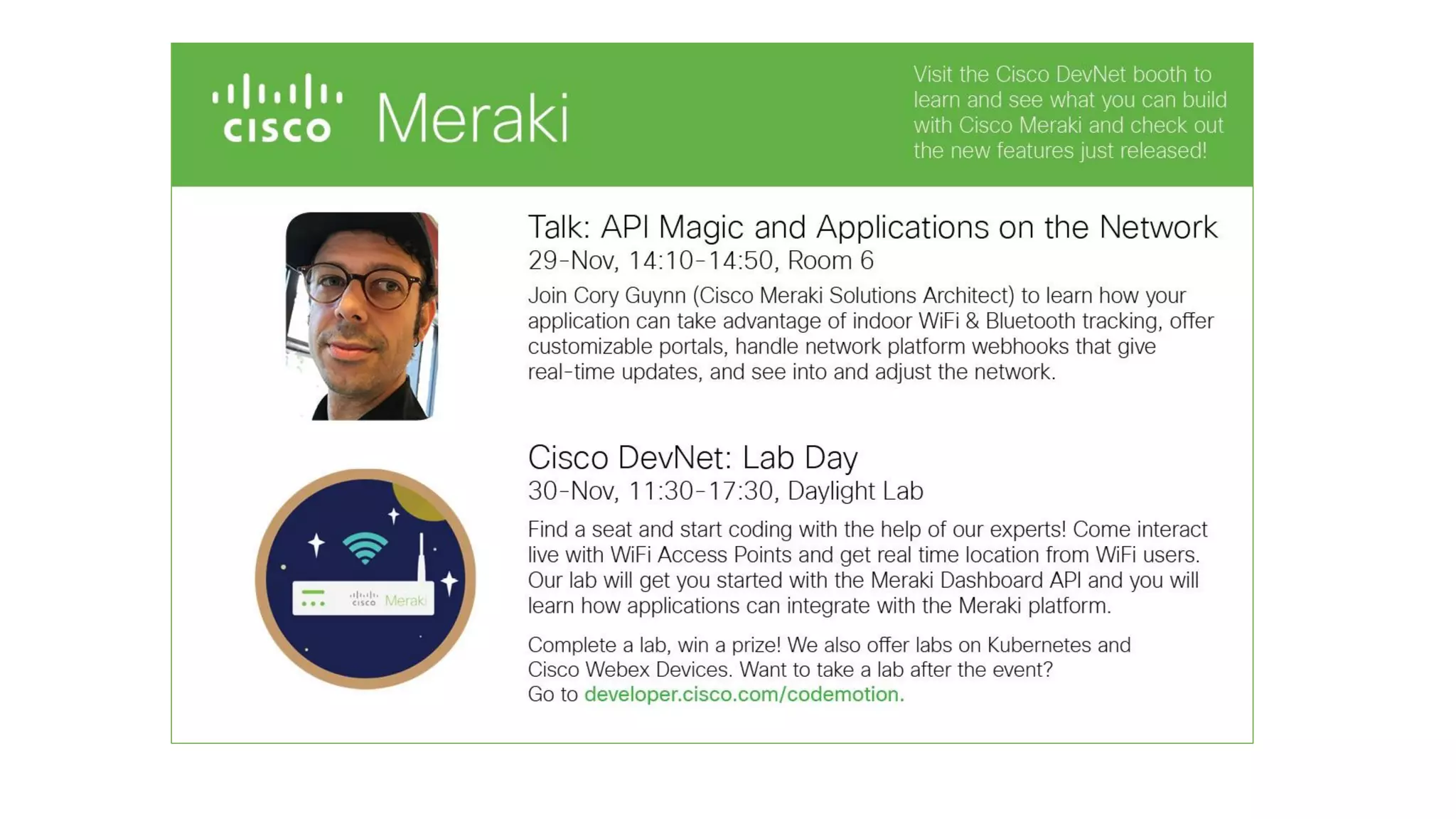 The document promotes the Cisco DevNet event held on November 29-30, 2018, in Milan, focusing on the integration of applications with infrastructure. It highlights various themes such as API design, programmable infrastructure, and IoT controls, aiming to inspire developers to innovate and leverage technology. Attendees were encouraged to explore opportunities, collaborate, and enhance their skills in app and infrastructure development.
