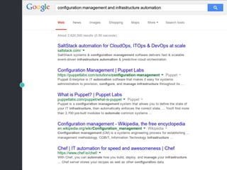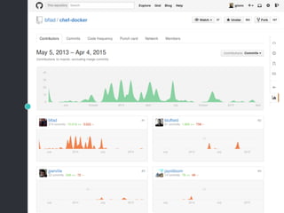 This document discusses Docker and Chef for container management. It begins with an introduction to Docker, describing how it allows packaging applications and dependencies to run unchanged on any system. Some rough edges of Docker are discussed, such as linking containers and complex configuration needs. The document then introduces Chef as a tool for configuration management and automation that can address Docker's rough edges. It provides examples of using Chef recipes and templates to manage Docker images, run containers, inject configurations, and deploy containers across multiple hosts. The document argues that Chef enables treating infrastructure as code and provides a standardized workflow for managing Docker containers at scale.