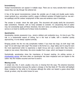 Writers often struggle to identify errors in their work due to cognitive biases, making editing services essential for thorough reviews. Common mistakes include inconsistencies, incorrect apostrophe usage, and missing words, all of which can disrupt the clarity of writing. A second reader or professional editor can provide the necessary distance and perspective to catch these 'invisible' errors and guide the author in rectifying them.