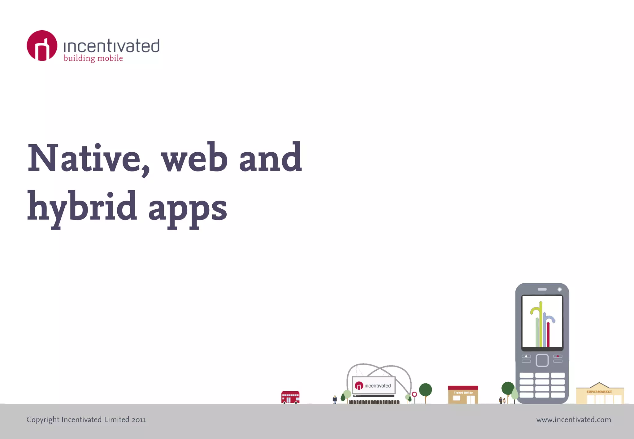 Native apps are designed to run directly on a device's operating system. They must be downloaded from app stores and updated through new downloads. Web apps run in browsers using HTML5 but can automatically update without downloads. Hybrid apps combine aspects of both - they are downloaded like native apps but can use web technologies like HTML, CSS, and JavaScript and update content over the air. They can also access device features like cameras through JavaScript.