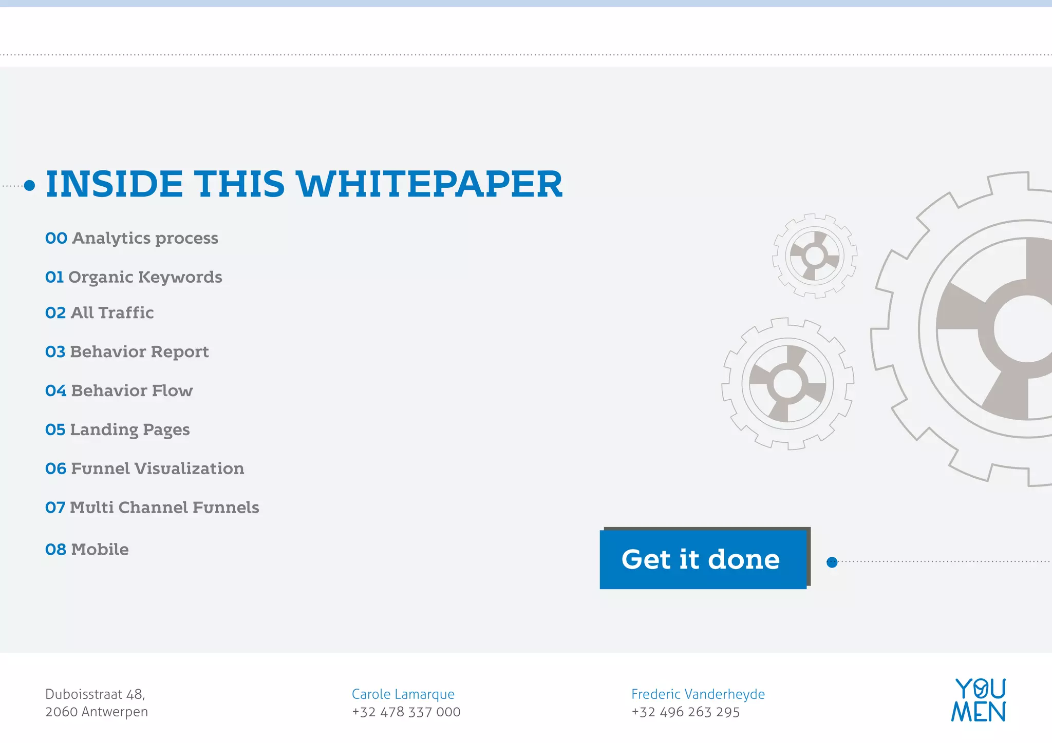 This document outlines eight key Google Analytics reports that CEOs should focus on to gain strategic insights into their businesses' digital performance, including acquisition, behavior, and conversion metrics. It emphasizes the importance of understanding traffic sources, user engagement, and conversion pathways to enhance marketing strategies and improve ROI. Each report provides specific data that can inform business decisions and optimize website effectiveness.