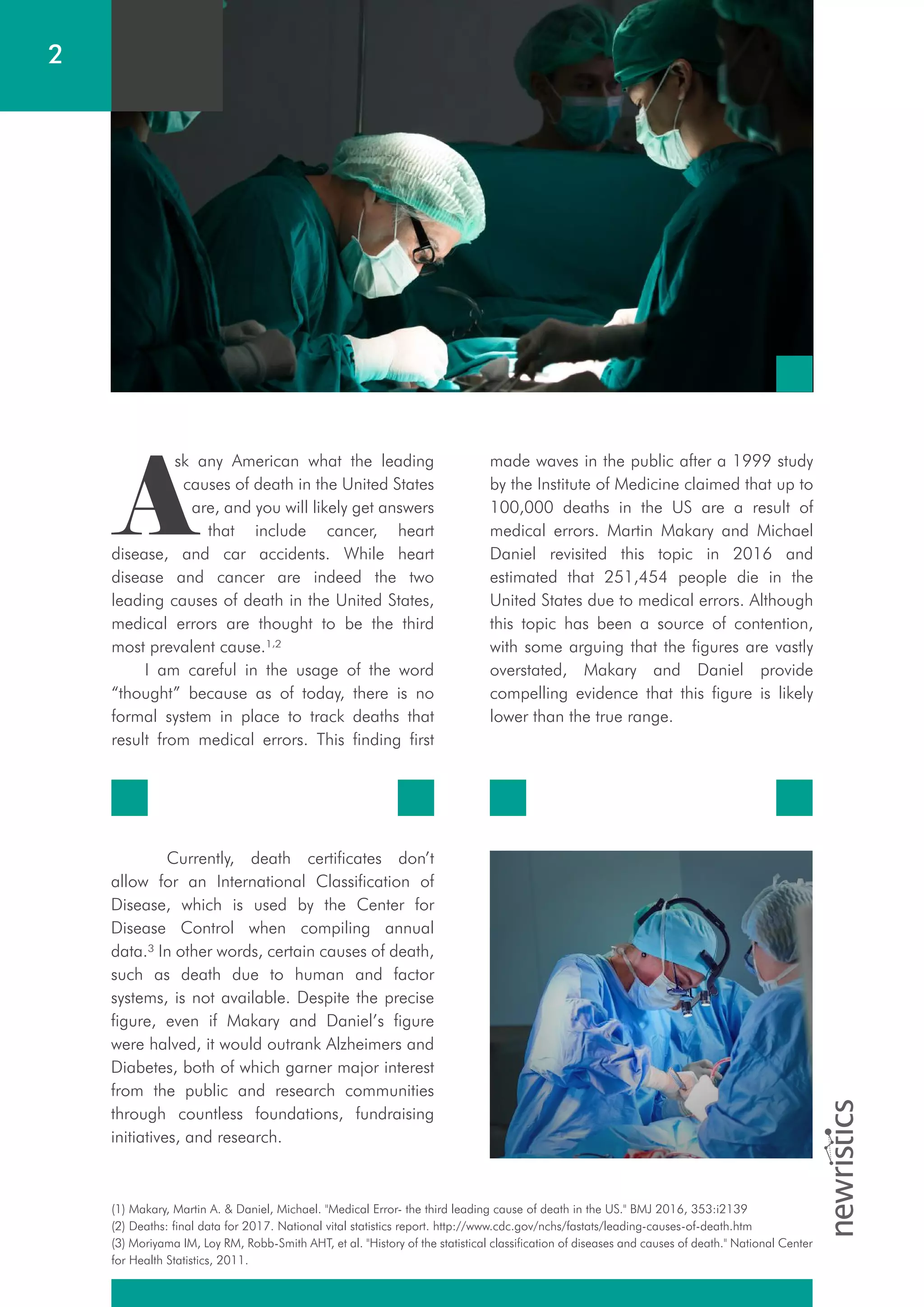 Medical errors are a leading cause of death in the U.S., estimated to result in over 250,000 deaths annually, yet current tracking systems are inadequate. The document analyzes decision-making heuristics contributing to this issue, such as status quo bias, mental inertia, and overconfidence among healthcare providers. It advocates for implementing a comprehensive tracking system to better understand and ultimately reduce medical errors, drawing parallels to practices in the aviation industry.