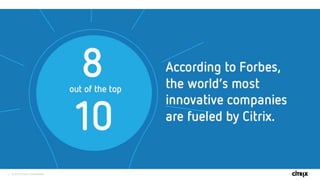 This document is copyrighted material from Citrix in 2016. It discusses how Citrix helps customers work better and live better through virtualization, networking, and cloud services. The document promotes visiting Citrix's customer case studies website to learn more about how different organizations use Citrix technology.