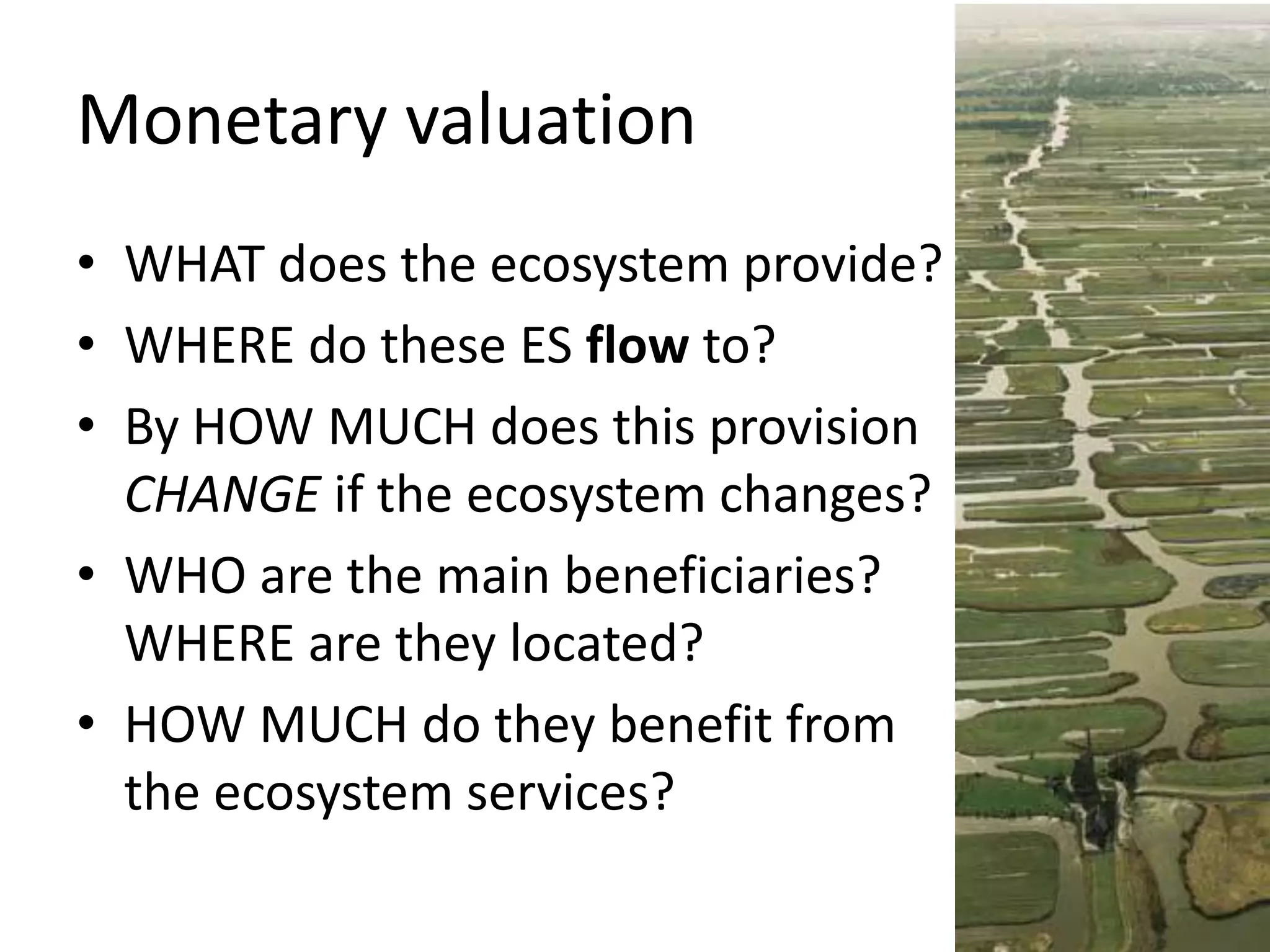 2. Spatial data on factors like population distribution, ecosystem characteristics, and accessibility is needed to understand how values vary across locations. Distance from the ecosystem and between beneficiaries also influences values.