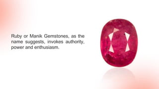 Ruby gemstones, known for invoking authority, power, and enthusiasm, are the birthstone for July and the zodiac sign Leo. Their benefits depend on the wearer's horoscope, so consulting an astrologer before wearing is advisable. For inquiries, contact the provided phone number or visit the website.