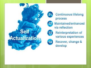 4) Barriers to psychological health include conditions of worth where acceptance is conditional, incongruence between experiences and self-