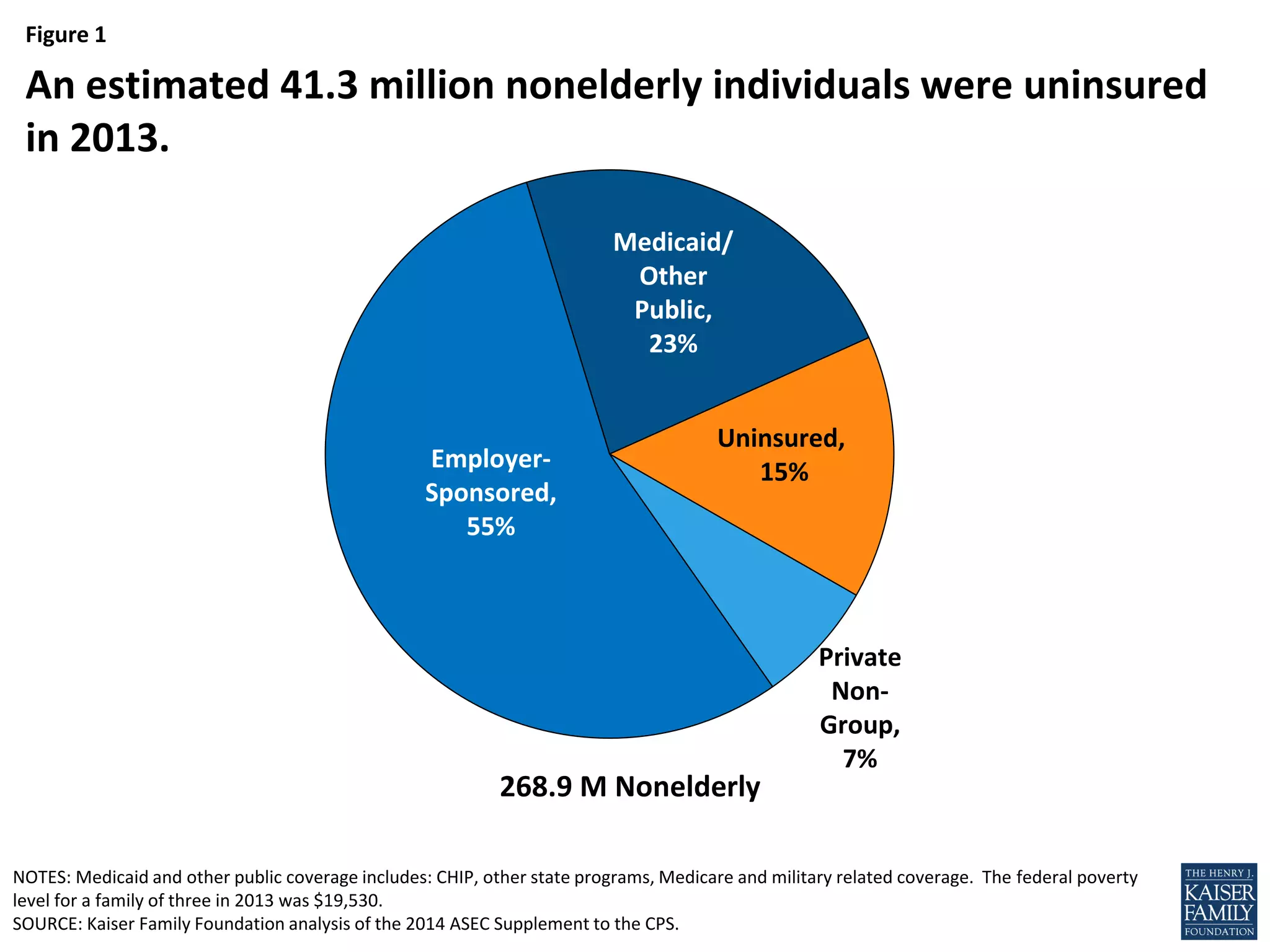 - If all states adopted the Medicaid expansion, the coverage gap would be eliminated and 64% of the nonelderly uninsured would be eligible for financial assistance to obtain health insurance.