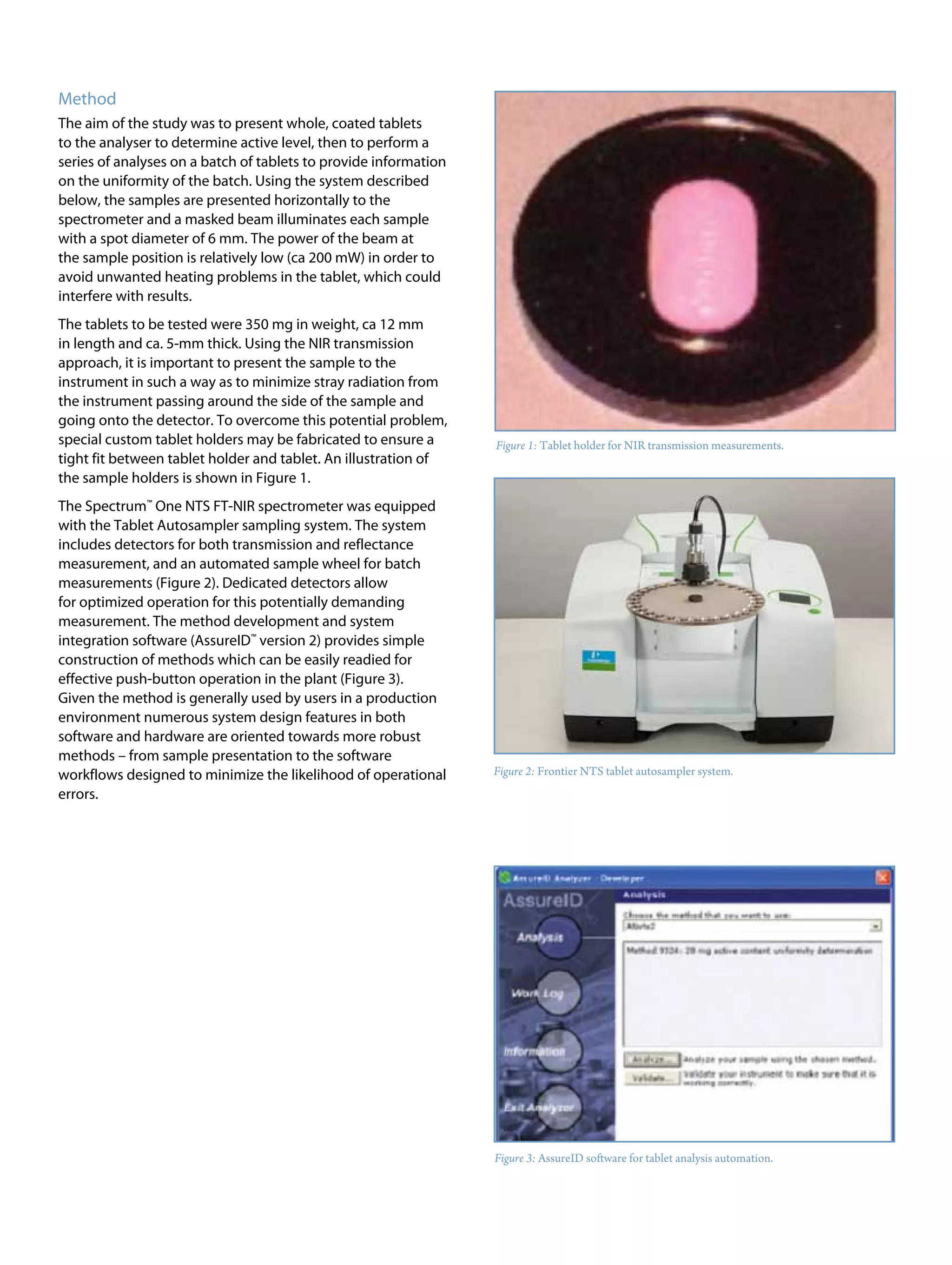 This document discusses the advancements in near-infrared (NIR) spectroscopy for whole tablet testing in the pharmaceutical industry, highlighting its potential to enhance measurement efficiency and process understanding compared to traditional HPLC methods. The method allows for non-destructive, rapid analysis of tablet content, which facilitates faster feedback during production and improves batch uniformity assessments. As regulatory scrutiny increases and technology improves, NIR is expected to become a standard testing method in pharmaceutical manufacturing.