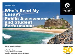 The document discusses public assessment and student performance. It describes three case studies of university courses that incorporated public or shared assessment components, such as Twitter essays, music blogs, and contributing to Wikipedia. For each case study, it provides the course learning objectives and types of assessment. It also includes comparative grade data and examples of student feedback, which was generally positive about the value of public assessment. The document argues that making student work publicly available and assessing work intended for broader audiences can motivate students and shift the focus of feedback to a more social practice.