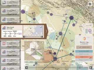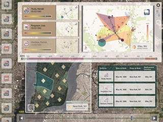 The document discusses how understanding your audience is important when creating maps. It summarizes a presentation by Chris Goranson and Sayoko Yoshida of the Parsons Institute for Information Mapping on traditional map making versus new interactive maps. The presentation covers how data collection and GIS technologies have changed, allowing for more customized, stylized maps. It also discusses how interactive maps don't need traditional elements like legends or scale bars and can be explored dynamically by users.