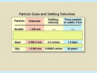 This document discusses the classification and distribution of different types of marine sediments. Sediments are classified based on their origin as lithogenous (derived from land), biogenous (derived from organisms), hydrogenous (derived from water), or cosmogenous (derived from outer space). Lithogenous sediments include eroded rock fragments transported from land by rivers, wind, ice or gravity. Biogenous sediments consist of the hard remains of once-living organisms like shells. Hydrogenous sediments form as minerals precipitate directly from seawater, like manganese nodules. The distribution of sediments depends on factors like proximity to land, water depth, biological productivity and dissolution rates.