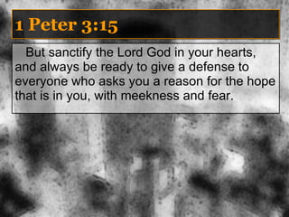 The document discusses why Christians follow the practices and teachings found in the New Testament rather than other sources of authority. It provides biblical justification for why Christians sing a cappella, believe baptism is necessary for salvation, have elders rather than a single pastor, and give voluntary offerings on Sundays. The document encourages examining the reasons for one's own religious practices and ensuring they are biblically authorized.