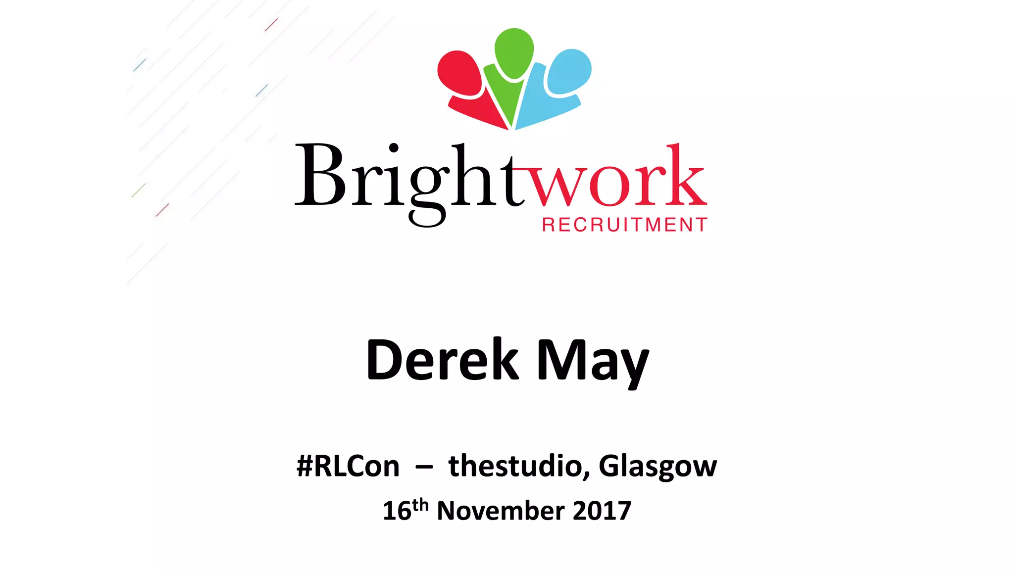 Derek May's presentation on November 16, 2017, at The Studio in Glasgow emphasizes the importance of combining control, mastery, and purpose in business. He outlines the approach to solving clients' recruitment challenges by understanding their specific needs and finding suitable candidates. The focus is on building close relationships with clients to effectively address their requirements.
