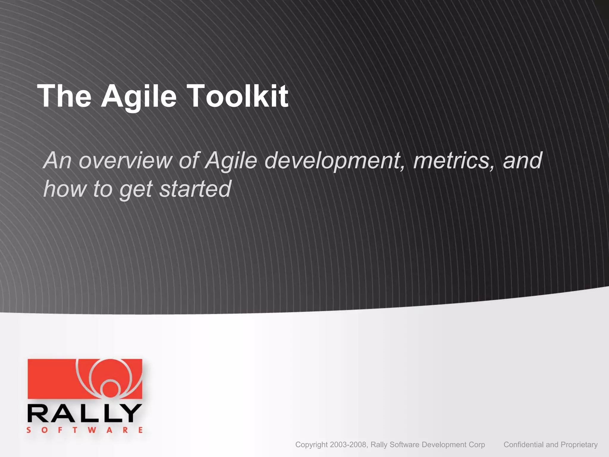 The document provides an overview of Agile development and how to get started with an Agile approach. It discusses some of the benefits of Agile such as increased productivity, quality and stakeholder satisfaction compared to traditional waterfall approaches. It also addresses common objections to Agile. The document then describes key aspects of implementing Agile including Scrum roles and processes and tips for getting teams trained in Agile.