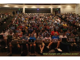 This document argues that all learners need laptops now for three main reasons: 1) Textbooks and traditional classroom materials are outdated and do not accommodate different learning styles, while laptops can provide personalized and differentiated instruction. 2) Laptops allow students to access a wealth of up-to-date digital resources and collaborate globally, better preparing them for the modern world. 3) Affordable laptops can empower all students to develop important 21st century skills like creativity, problem-solving, and digital literacy that will help them succeed.