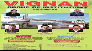 The document provides information about career options after completing +2 Science and details about pursuing B.Tech. It lists various B.Tech courses and their future prospects, placement opportunities, average salaries, and required entrance exams. It also introduces Vignan University and provides contact details of faculty and administration.