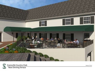 The document summarizes information about Evansville Country Club, including its history of providing family experiences for over 113 years. It highlights upcoming events like kids camp and holiday events, as well as facility updates to the golf course, tennis courts, swimming area, and dining facilities. New membership incentives are outlined for 2013, including reduced initiation fees and gifts for recruiting new members. The goal is to enhance the member experience and create lifelong memories at the club.