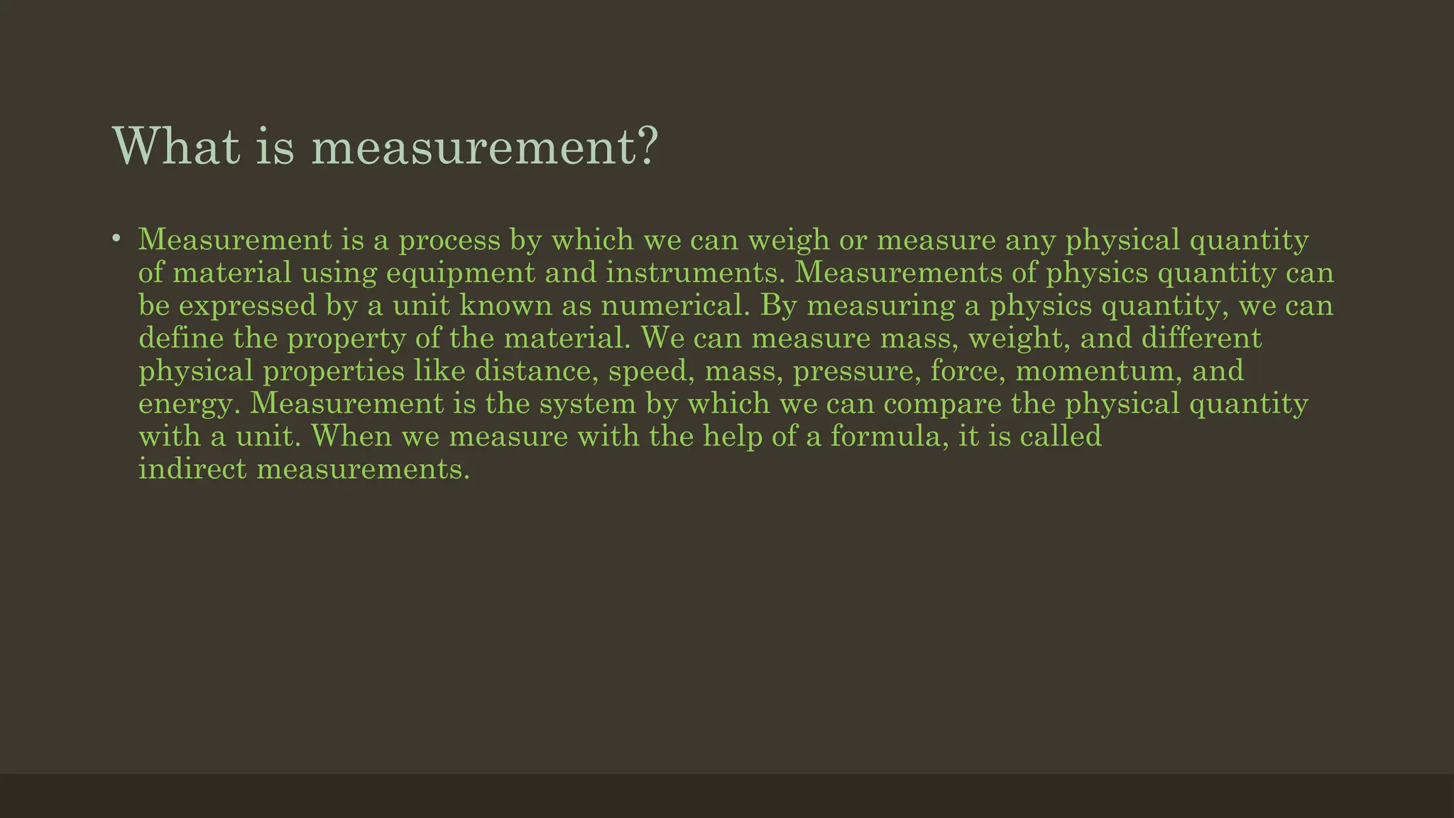 • Measurement isa process by which we can weigh or measure any physical quantity.