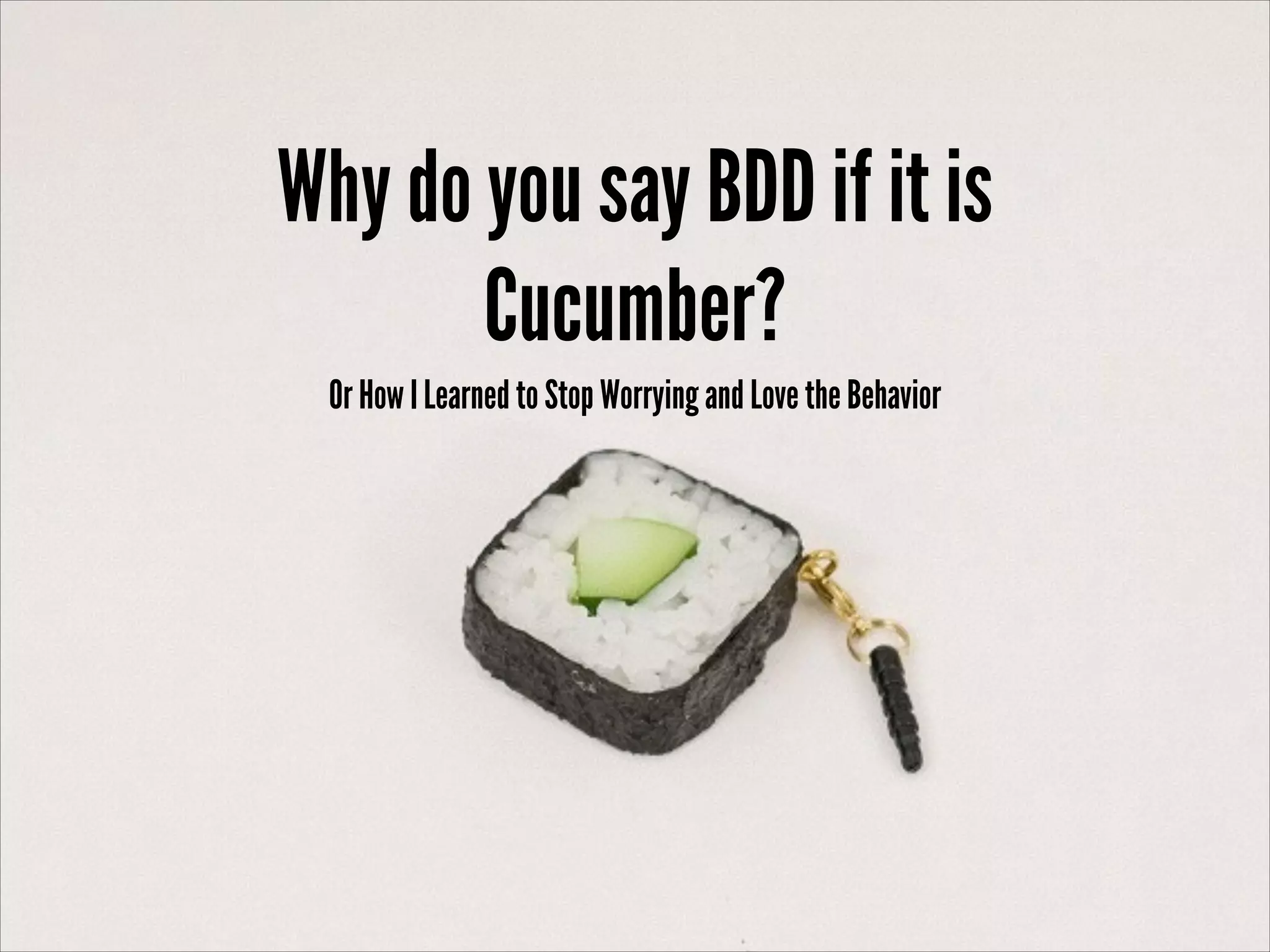 This document discusses the difference between Behavior-Driven Development (BDD) and Cucumber, a tool used for BDD. While Cucumber can be used for BDD, it does not guarantee that BDD is being properly practiced. BDD is a mindset and process that focuses on defining features and scenarios from the perspective of stakeholders to reduce miscommunication between teams. Gherkin language and Cucumber tool can be used to define narratives in a simple format understood by all teams. The document provides guidelines for writing effective scenarios using this approach to achieve emergent design through examples and collaboration between teams.