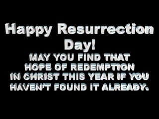 The document argues that the celebration of Easter should be referred to as Resurrection Day, as it commemorates Jesus' resurrection which provides hope for humanity. It discusses the origin of sin through Adam and Eve's disobedience and emphasizes the promise of a redeemer, Jesus Christ, who is essential for salvation. Relevant biblical references are included to support these claims.