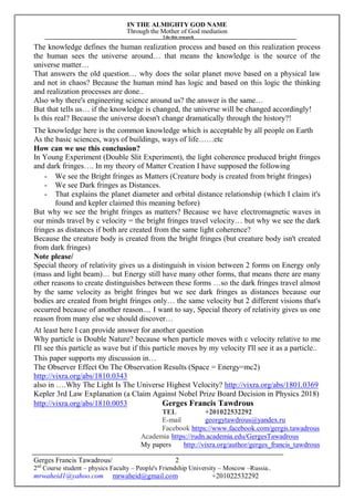 The document discusses why energy exists in different forms from the perspective of observer position and knowledge. It argues that the energy form observed depends on the observer's velocity relative to the energy, as informed by relativity theory, and also depends on the observer's level of knowledge and realization processes, which are shaped by common knowledge. The knowledge of observers collectively shapes what is observed as the universe.