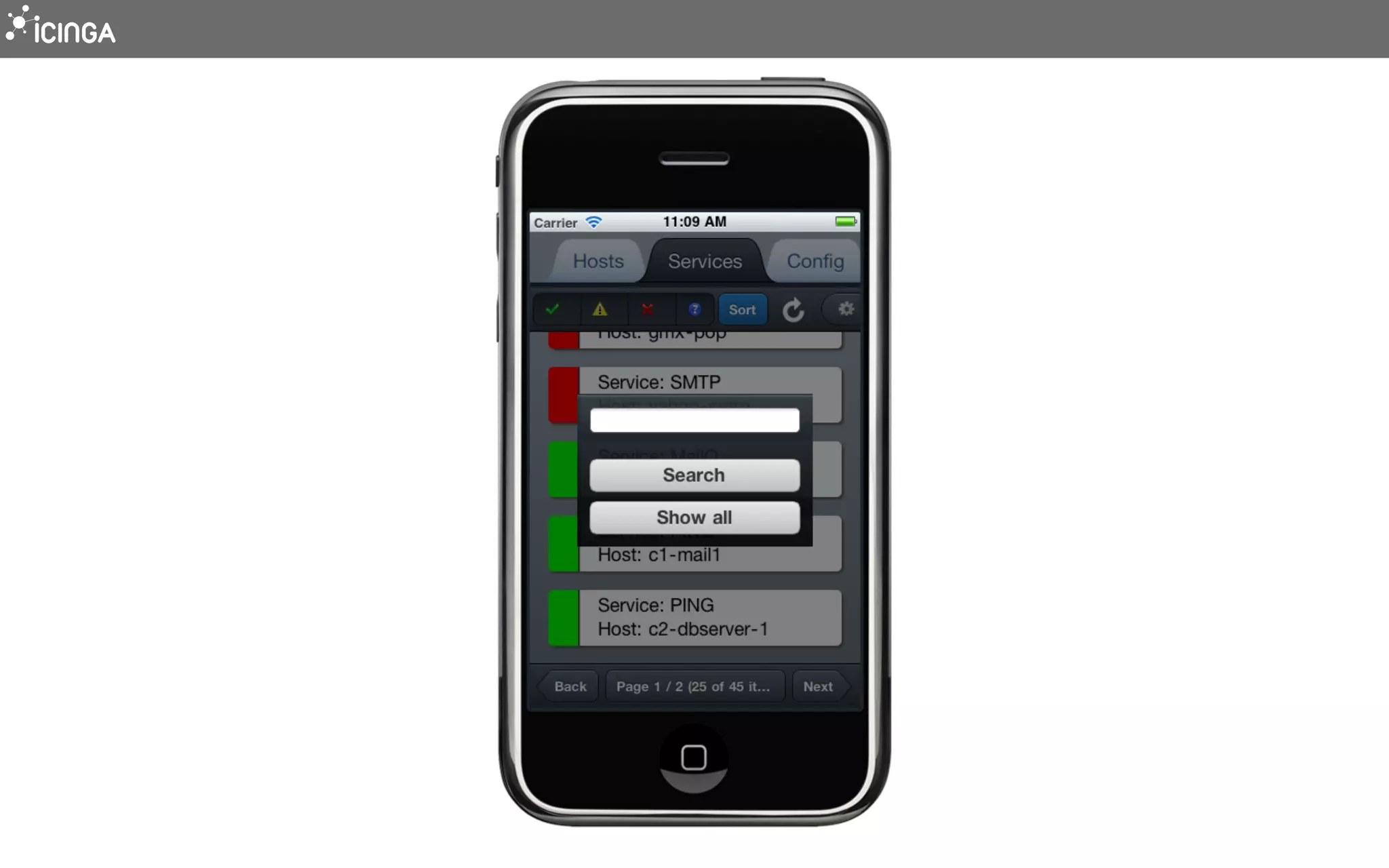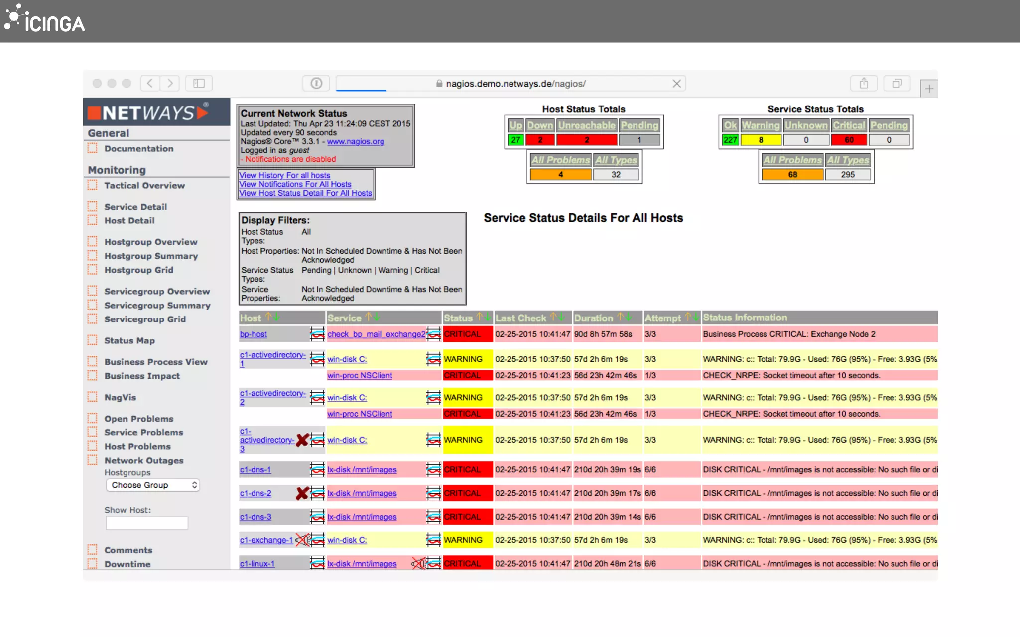 Icinga is an open source monitoring system that is more scalable than Nagios. It uses a multi-threaded C++ core that allows it to distribute load automatically and monitor thousands of devices quickly. Icinga 2's configuration is more flexible than Nagios and allows for more sophisticated setups through features like templates, host groups, and variables. Icinga also includes components like Icinga Web 2 that provide responsive interfaces for management and monitoring.