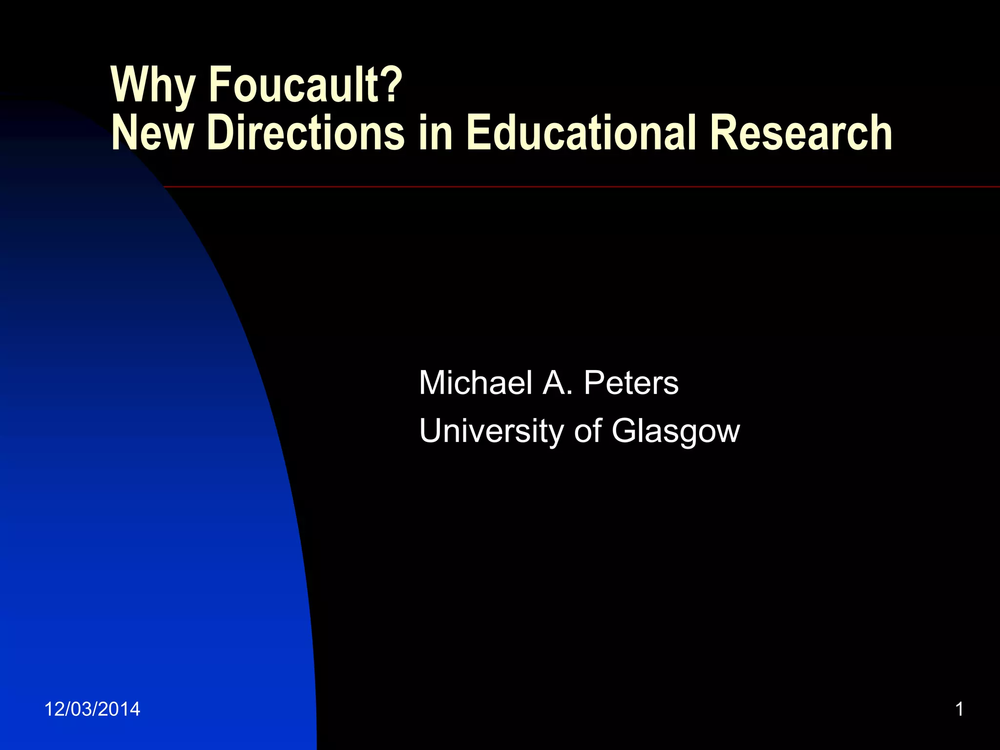 Foucault is a prominent philosopher whose work is still relevant today. He rejected being labeled and is interpreted differently by different audiences. Foucault examined how subjects are objectified through dividing practices and systems of knowledge. He was influenced by Nietzsche and aimed to create a critical history and ontology of ourselves to analyze the constitution of human subjects and operation of power without prioritizing power or desire. Foucault's work has been applied in educational research in various ways by different scholars.