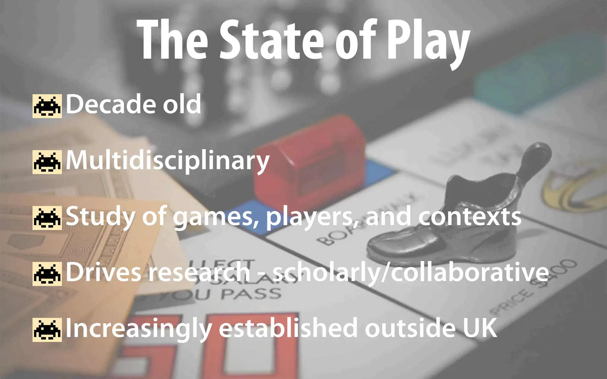 Game studies is a decade-old multidisciplinary field that studies games, players, and contexts to drive research and collaboration. It aims to integrate theory and practice to promote innovation, research, and industry prosperity. Game studies provides a foundation for students by teaching dramatic elements, interactivity, and industry awareness to empower graduates and encourage innovative game design. It establishes a common language and research space for understanding games as a culture and rapidly changing business.