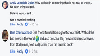 The document discusses arguments for the existence of God, including the cosmological argument, teleological argument, and moral argument. It also discusses reasons some people give for not believing in God, such as that the Bible is ridiculous or the problem of evil. Additionally, it notes that Chicago is one of the most "post-Christian" cities in the US, defined as not believing in God or feeling faith is important.