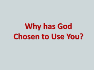 This document discusses why God chooses to use people to accomplish His will. It provides several reasons:
