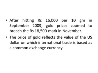 1) A weak US dollar has made gold a more attractive investment as the dollar declines.