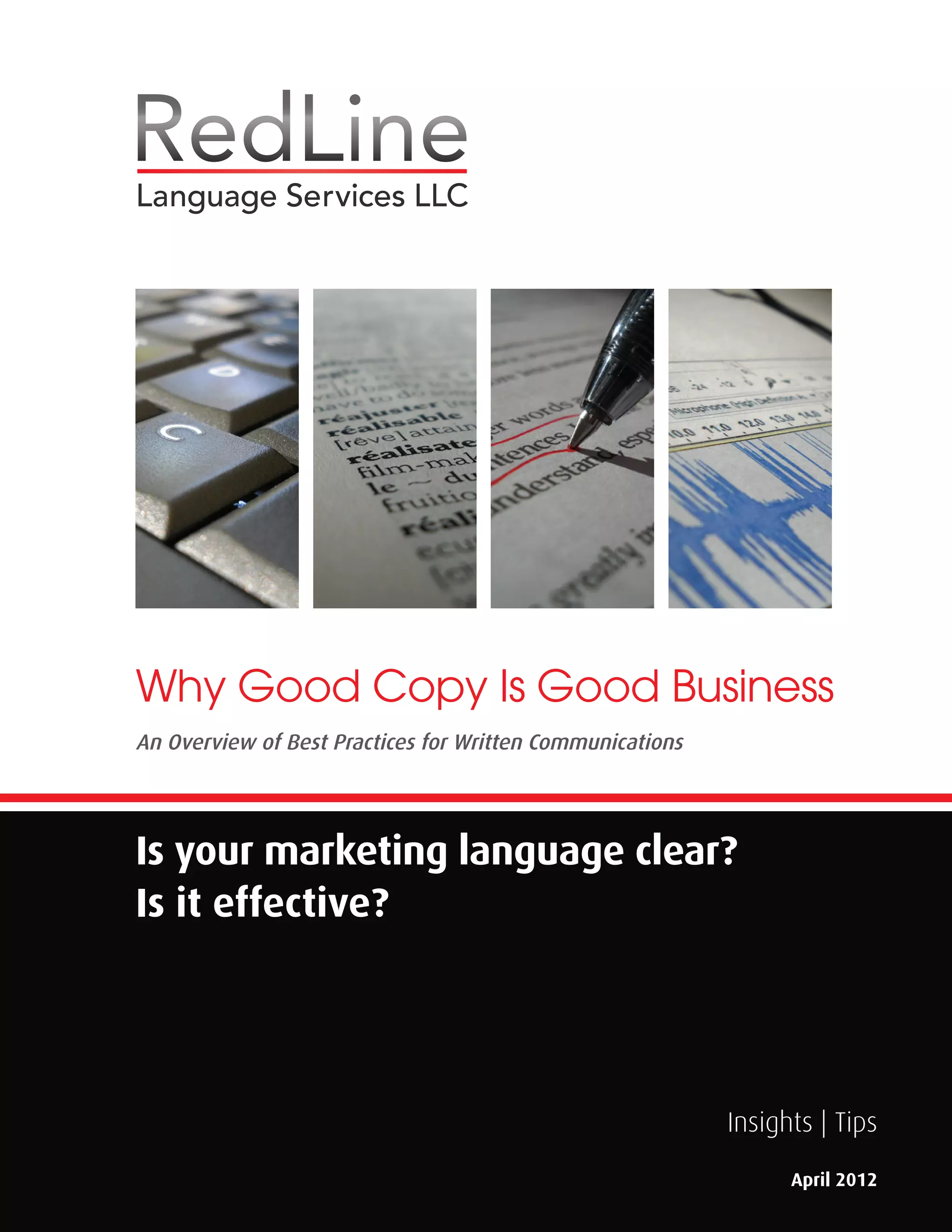 The document outlines best practices for written communications, emphasizing the importance of clear and effective marketing copy to engage potential customers. It includes a structured approach involving planning, composing, and editing text, while also providing various tips to enhance clarity and impact. Additionally, it features appendices with resources on readability and web copy analysis, aiming to assist business owners and writers in creating compelling content.