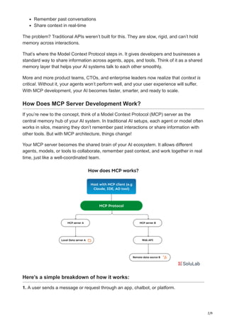 If you’re new to the concept, think of a Model Context Protocol (MCP) server as the central memory hub of your AI system. In traditional AI setups, each agent or model often works in silos, meaning they don’t remember past interactions or share information with other tools. But with MCP architecture, things change!