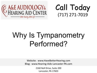 Tympanometry is a test performed by audiologists to assess the health of the middle ear and evaluate potential causes of hearing loss. It helps determine if further testing by an ear specialist is needed and is part of a comprehensive hearing evaluation. Abnormal results indicate that additional testing may be required.