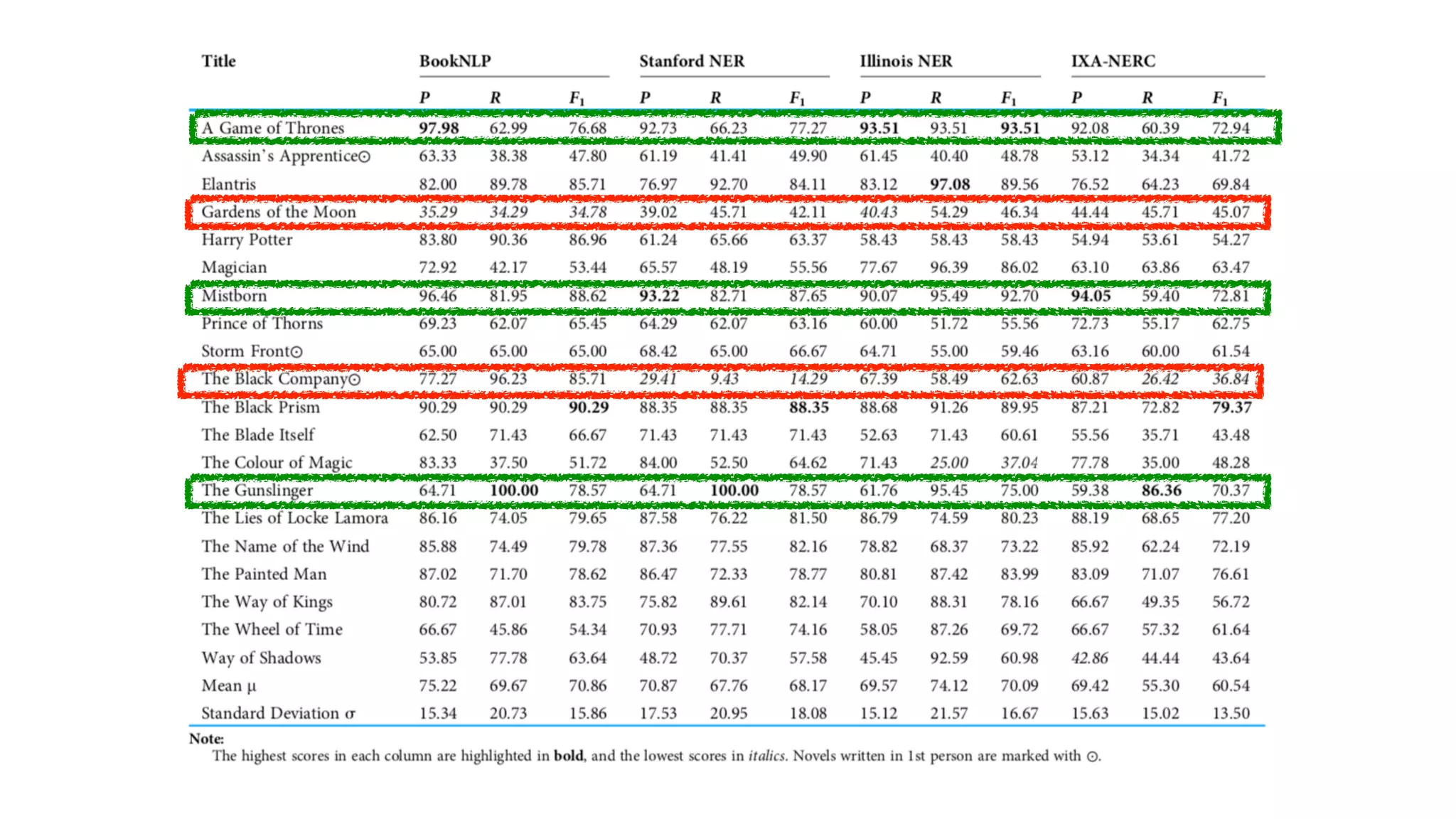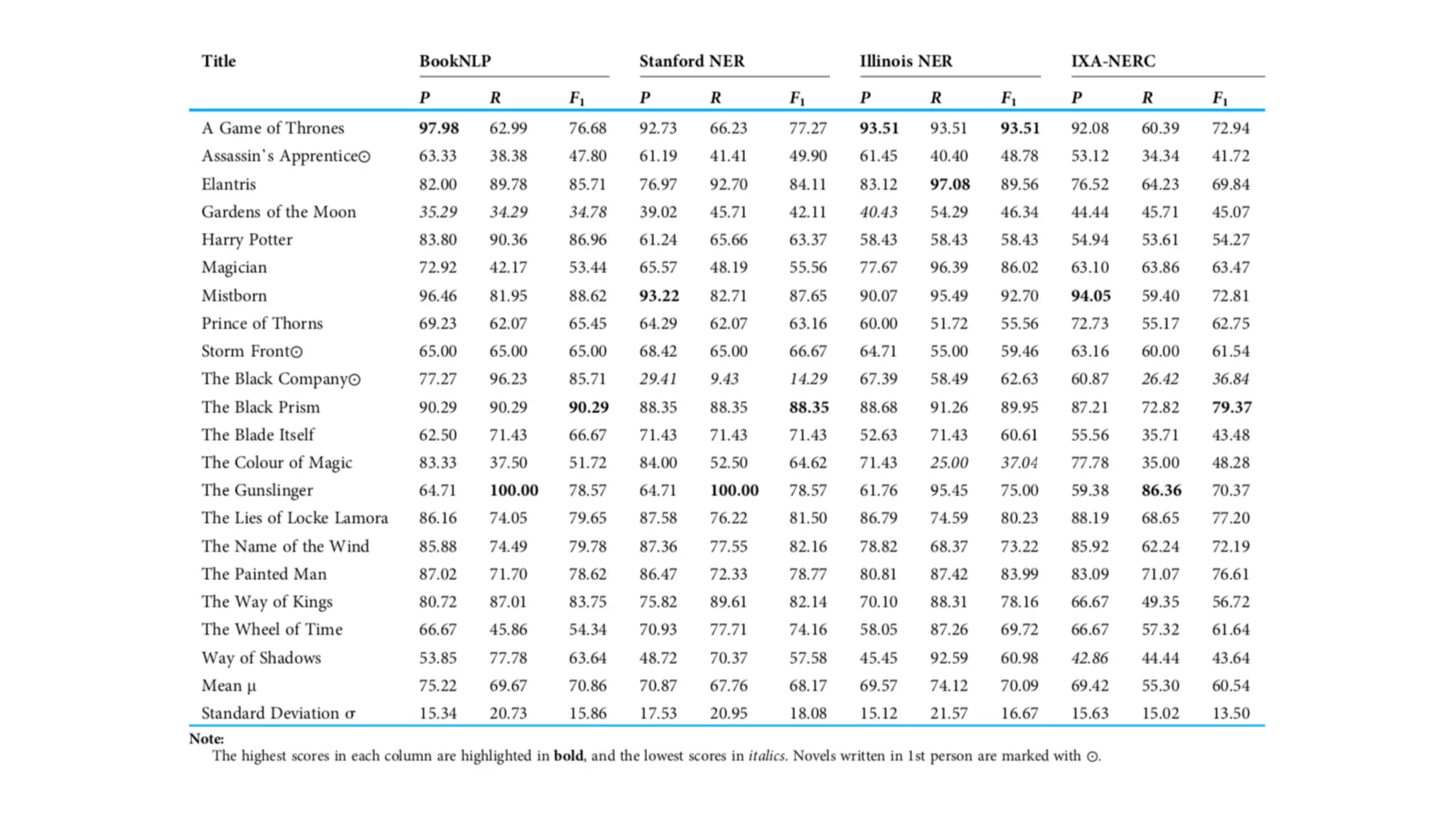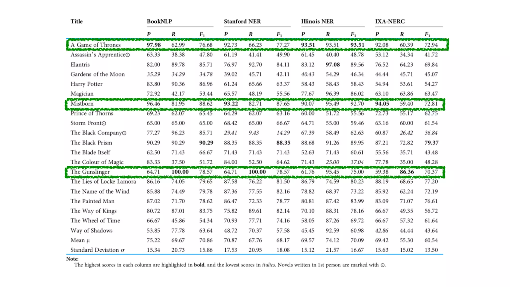 The document discusses the challenges in applying natural language processing (NLP) to modern fantasy literature, particularly analyzing named entities within texts like 'Game of Thrones.' It outlines a study comparing named entity recognition performance on 20 older classical novels to 20 newer science fiction and fantasy novels, detailing methodologies, tools employed, and preprocessing steps. The current capabilities of NLP technologies and their limitations in accurately processing complex fictional narratives are highlighted.