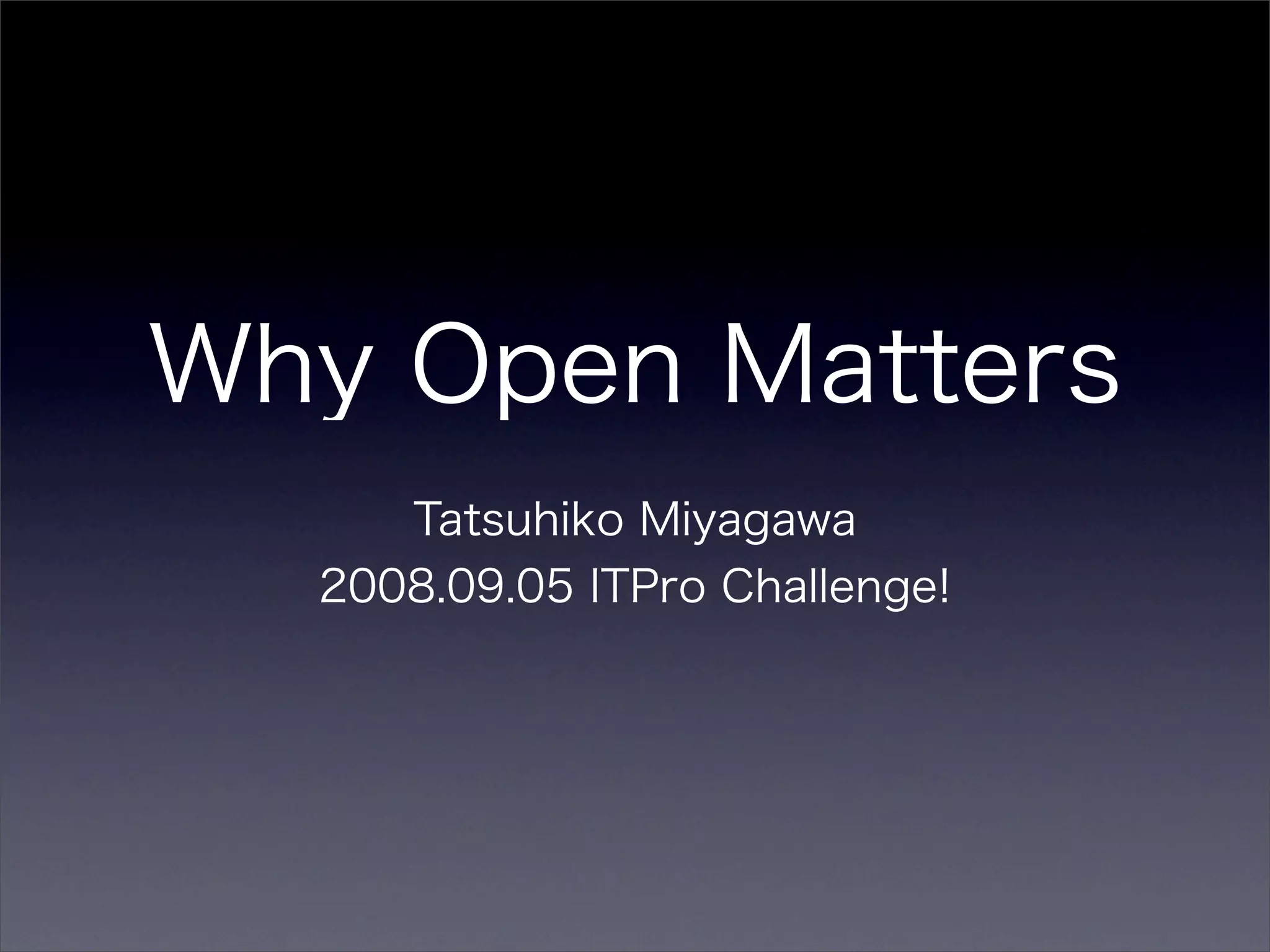 Why Open Matters It Pro Challenge 2008
