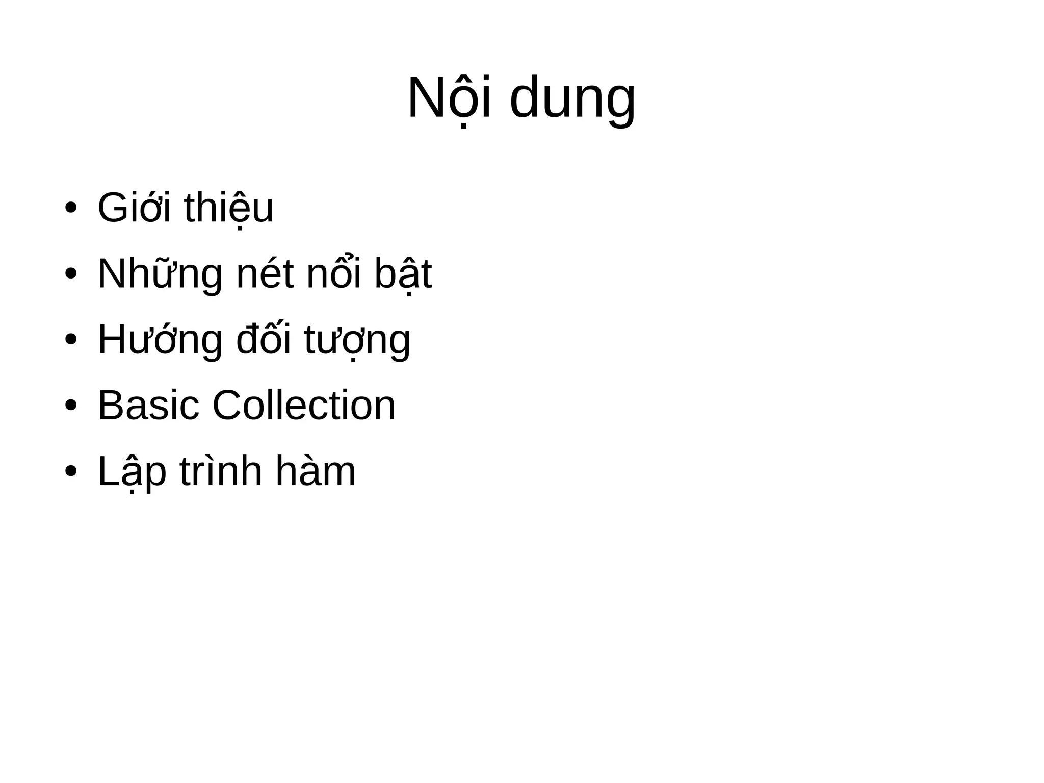 Tài liệu giới thiệu ngôn ngữ lập trình Scala, được phát triển bởi Martin Odersky vào năm 2003, với các tính năng nổi bật như cú pháp thân thiện, hỗ trợ lập trình hàm và khả năng tương tác với Java. Scala kết hợp ưu điểm của Java và Ruby, đồng thời được nhiều công ty lớn như Apple và Twitter áp dụng trong phát triển hệ thống. Tài liệu cũng nêu bật một số khái niệm quan trọng trong Scala như pattern matching, closures và functional combinators.