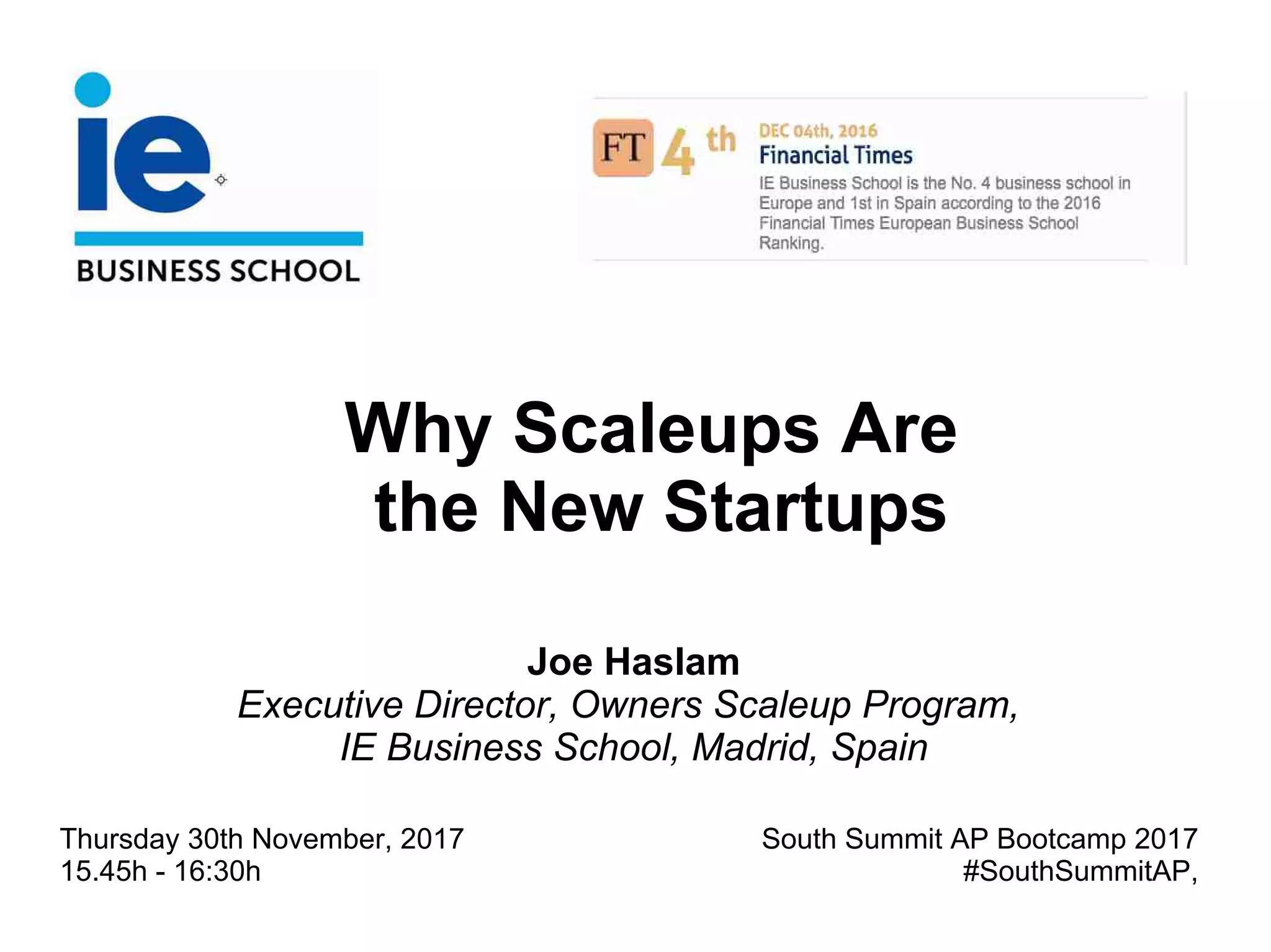 Joe Haslam discusses the transition from startups to scaleups, asserting that scaleups are the future of business growth. He highlights the importance of management skills, the difference in operational needs, and cultural considerations as companies grow. The document includes a case study on Totto and emphasizes the necessity to adapt strategies for successful scaling.