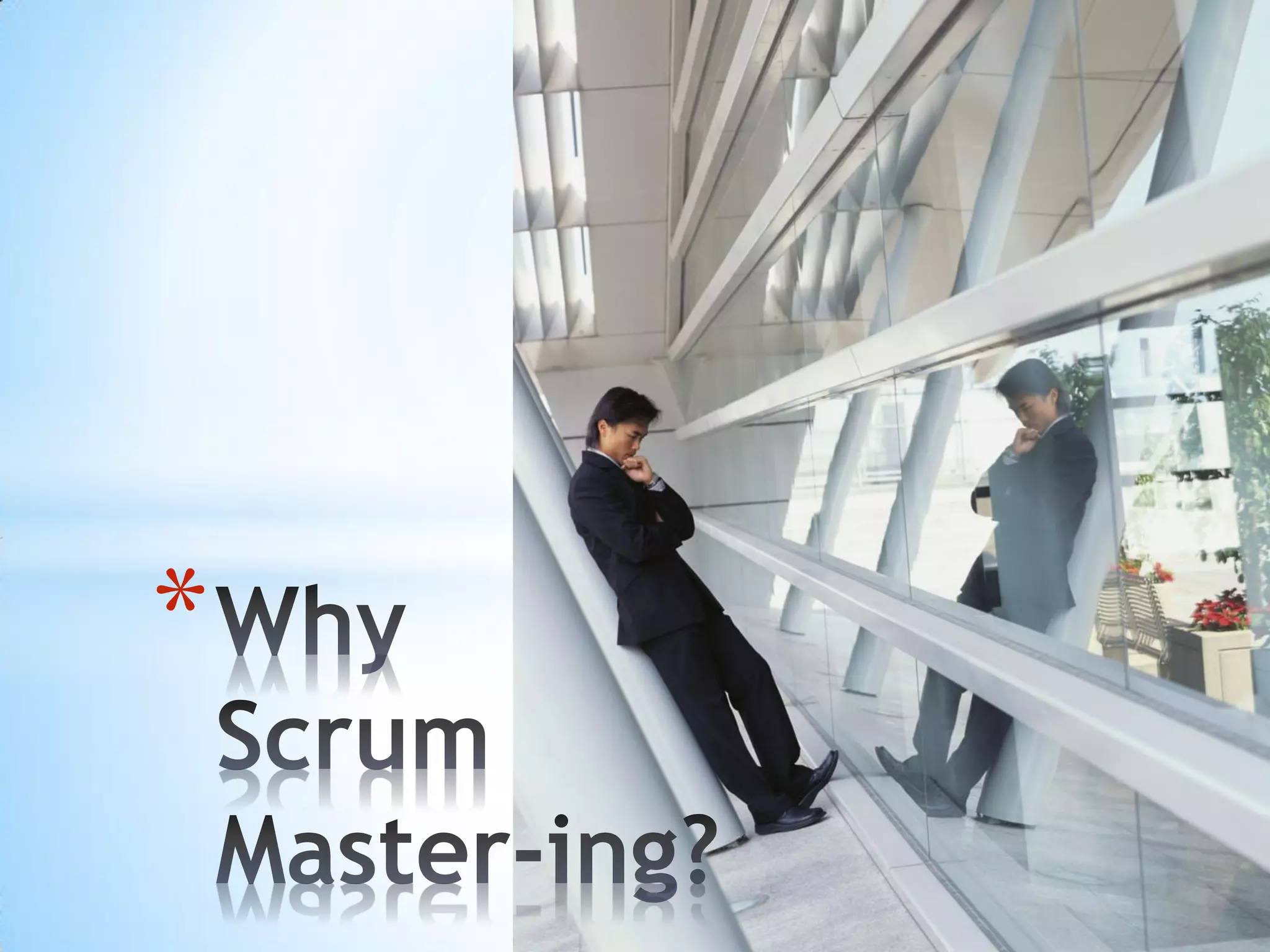 The document discusses roles and responsibilities in Scrum, including the Product Owner, Scrum Master, and team. It provides brief descriptions of what each role involves, such as the Product Owner prioritizing features, the Scrum Master removing barriers for the team, and the cross-functional team committing to goals for each sprint. It also emphasizes that the Scrum Master is a facilitator rather than a traditional manager, helping the team without authority over it.